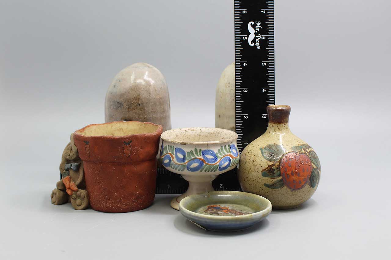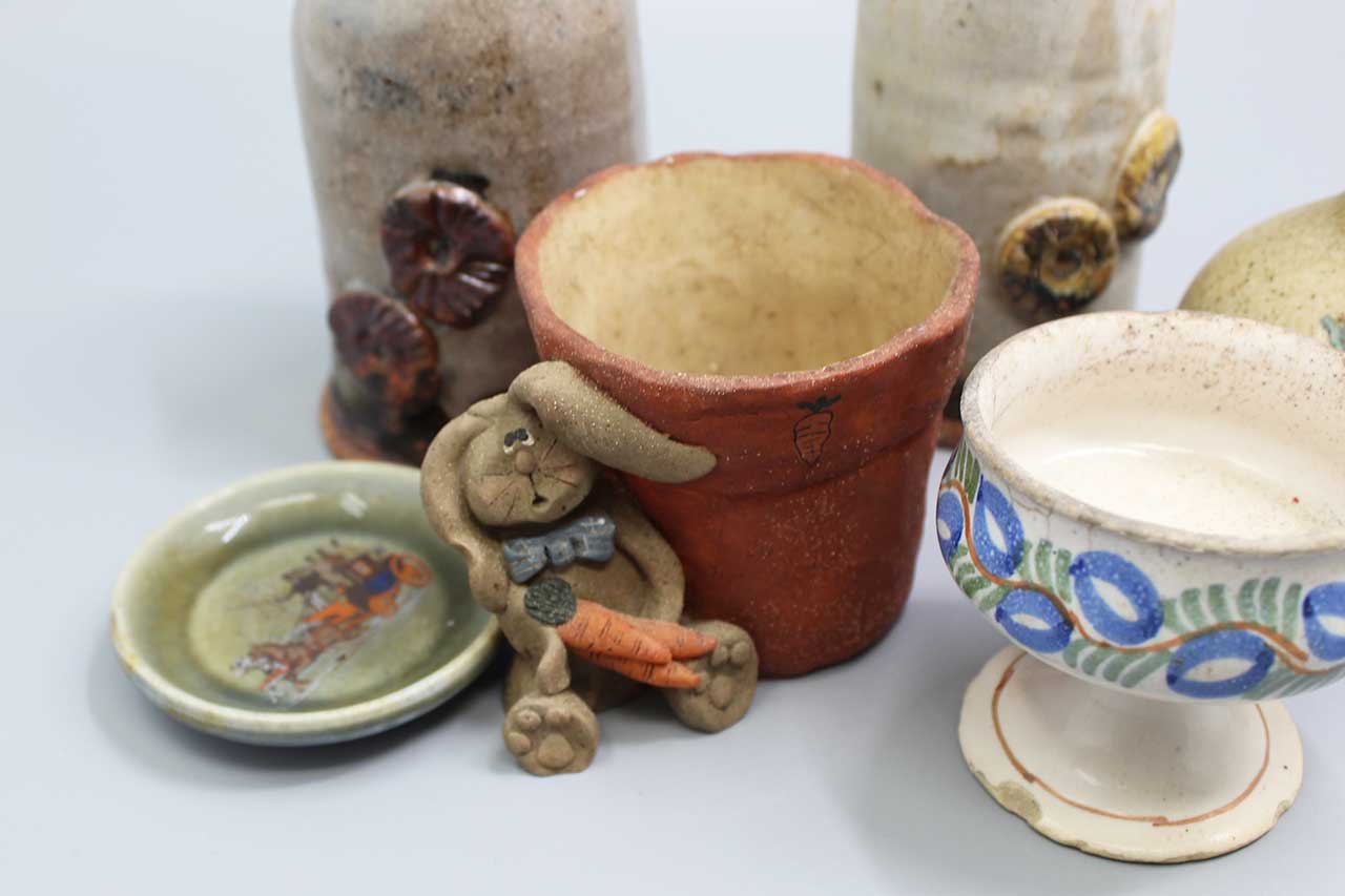 Group of various handcrafted ceramic items.