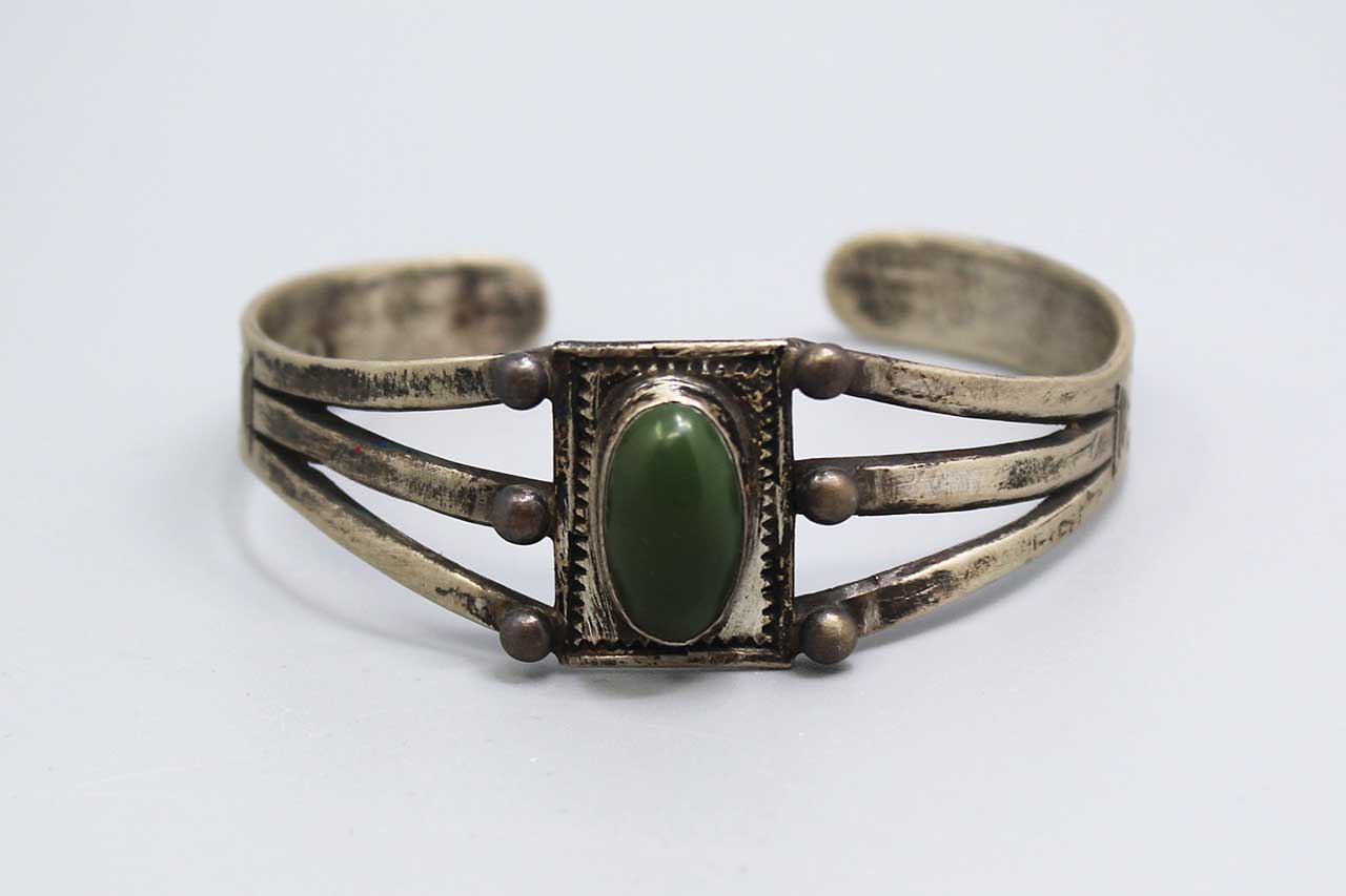 Vintage Native American Navajo Cuff Bracelet. Most likely 1920s-1940s era. Worn condition.