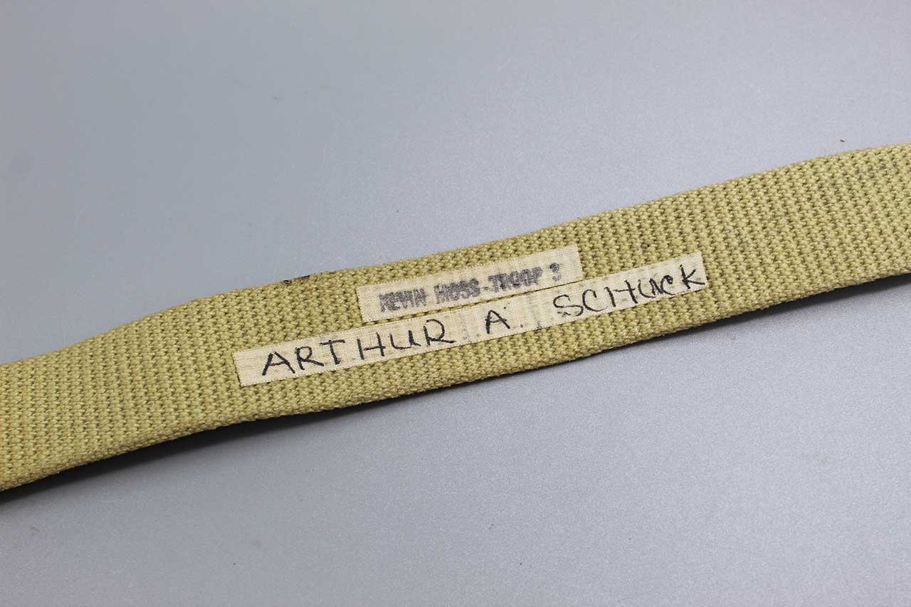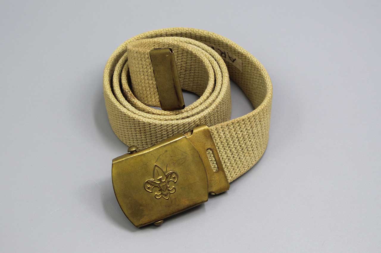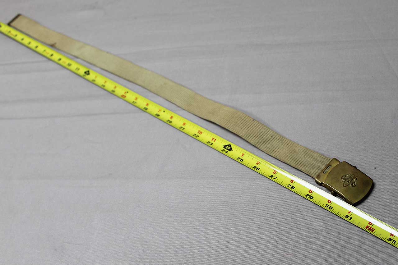 Vintage Boy Scouts BSA Belt and Buckle. Buckle marked solid brass made in U.S.A. Named on belt. Overall length approximately 31 inches. Most likely 1940s-1970s era. Worn condition.