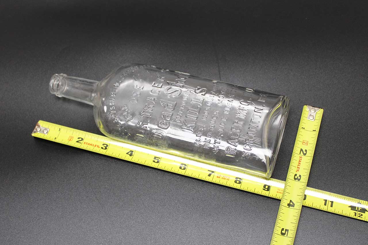 Vintage Dr. Tracers Deadshot Scranton PA 1920s Bottle. Size approximately 9 inches x 3 1/4 inches. Worn condition.