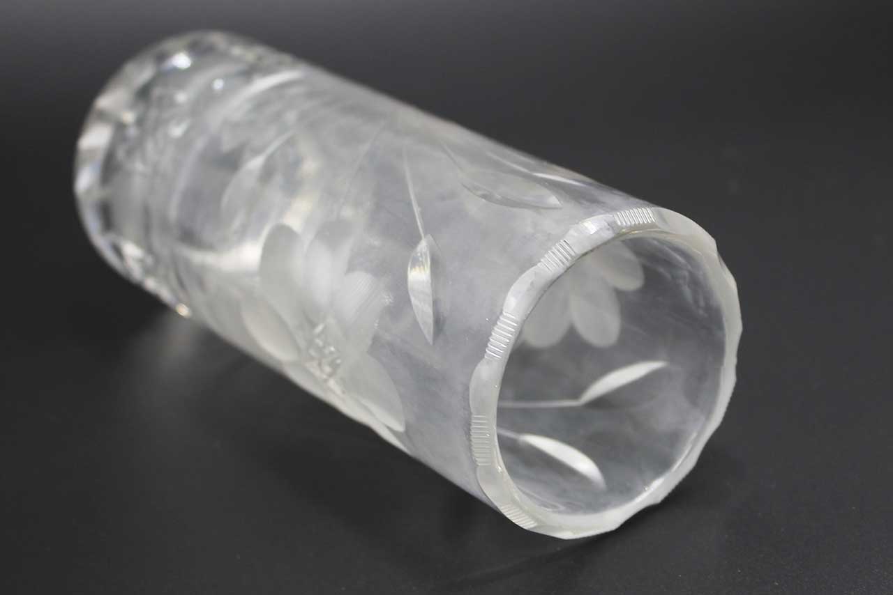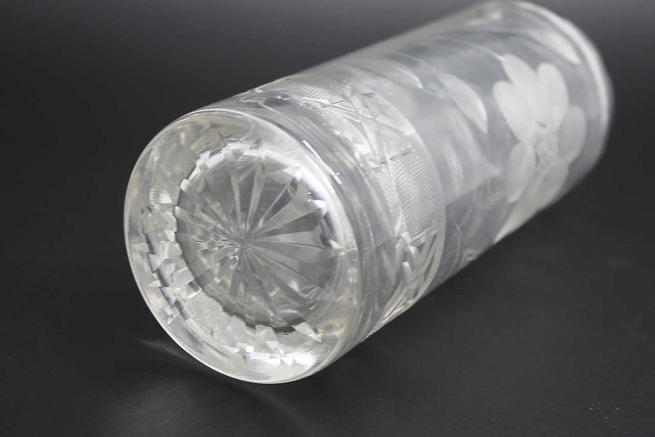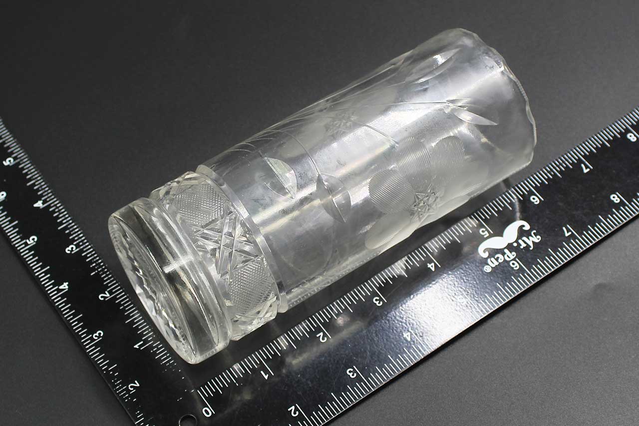 Vintage Cut Crystal Candle Holder. Approximately 6 inches in height. Worn condition.