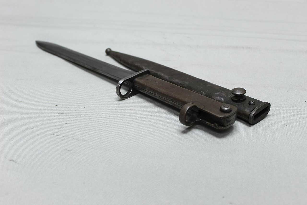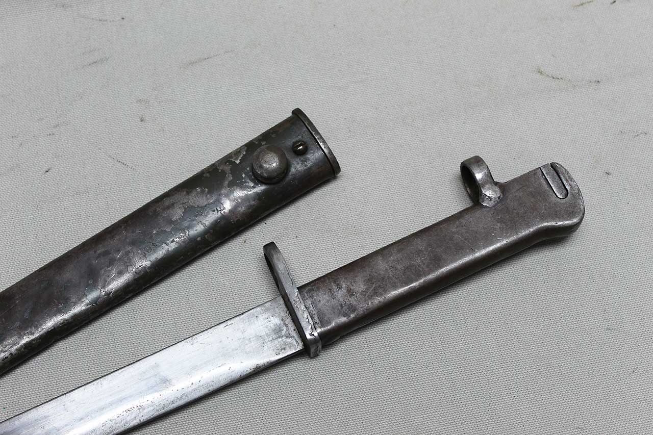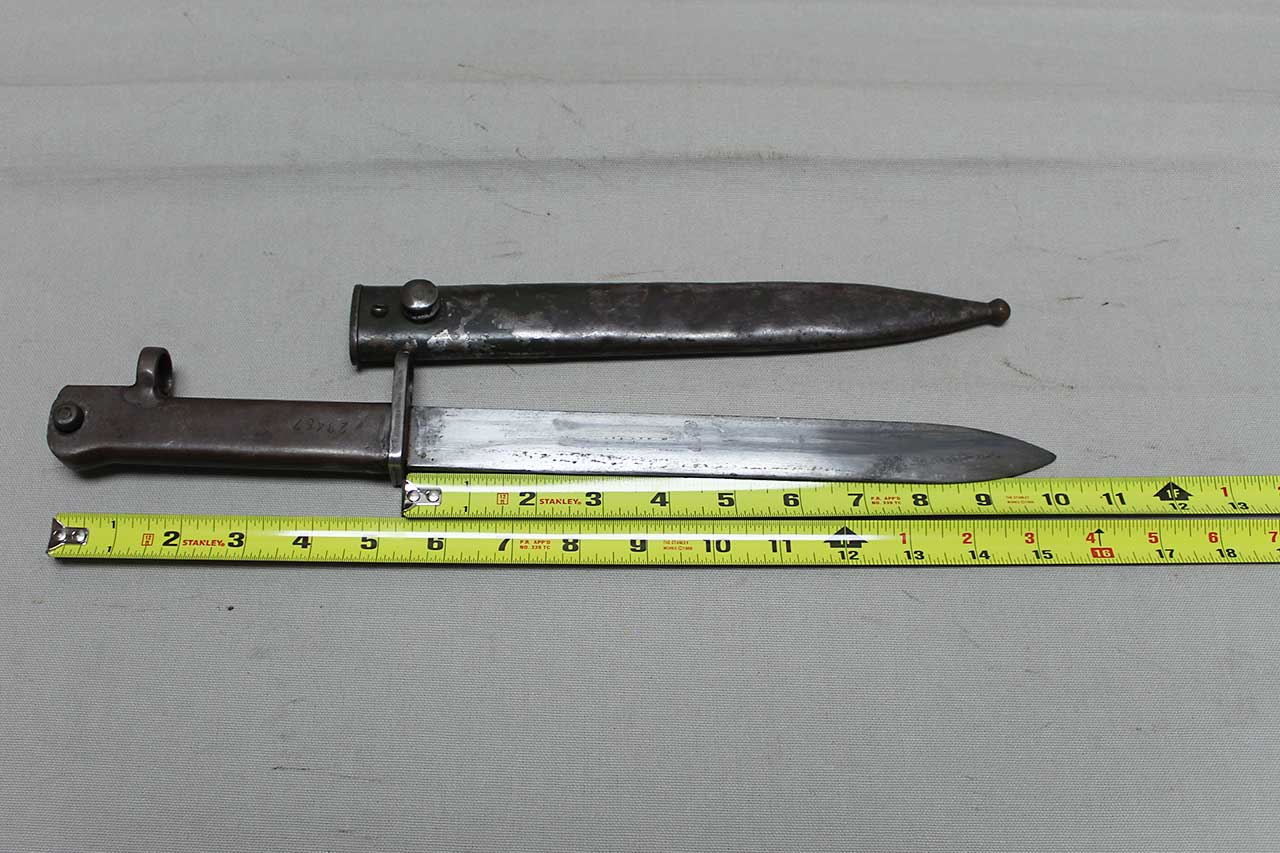 Additional Notes: German Ersatz (substitute) bayonets were made in Germany during the early years of WW1, because there were not enough regulation bayonets to equip the rapidly expanding army. Ersatz bayonets were manufactured in local workshops, resulting in hundreds of variations. The German specification was for a 12-inch blade. In addition to newly constructed bayonets, Ersatz Bayonets were also created by modifying captured bayonets of other countries. As time went on, these stop-gap bayonets were replaced by regulation bayonets, and many went to Turkish forces. The Turks shortened many blades to 10-inches (which are typically known as Turkish conversion or cut down bayonets).