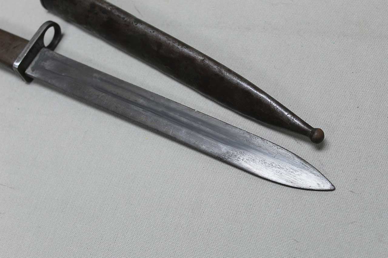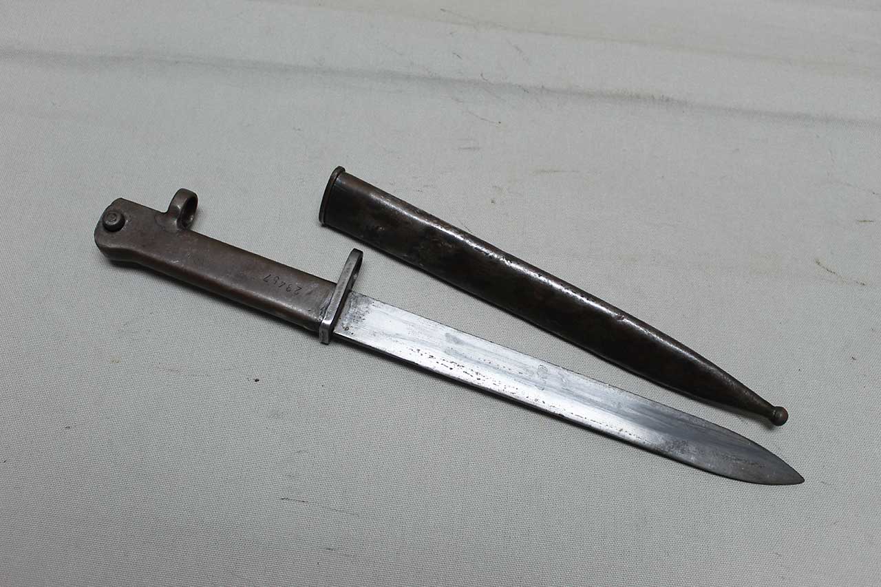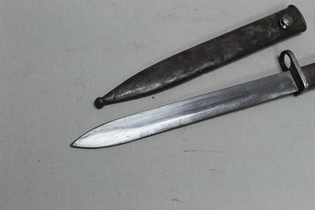 Additional Notes: German Ersatz (substitute) bayonets were made in Germany during the early years of WW1, because there were not enough regulation bayonets to equip the rapidly expanding army. Ersatz bayonets were manufactured in local workshops, resulting in hundreds of variations. The German specification was for a 12-inch blade. In addition to newly constructed bayonets, Ersatz Bayonets were also created by modifying captured bayonets of other countries. As time went on, these stop-gap bayonets were replaced by regulation bayonets, and many went to Turkish forces. The Turks shortened many blades to 10-inches (which are typically known as Turkish conversion or cut down bayonets).