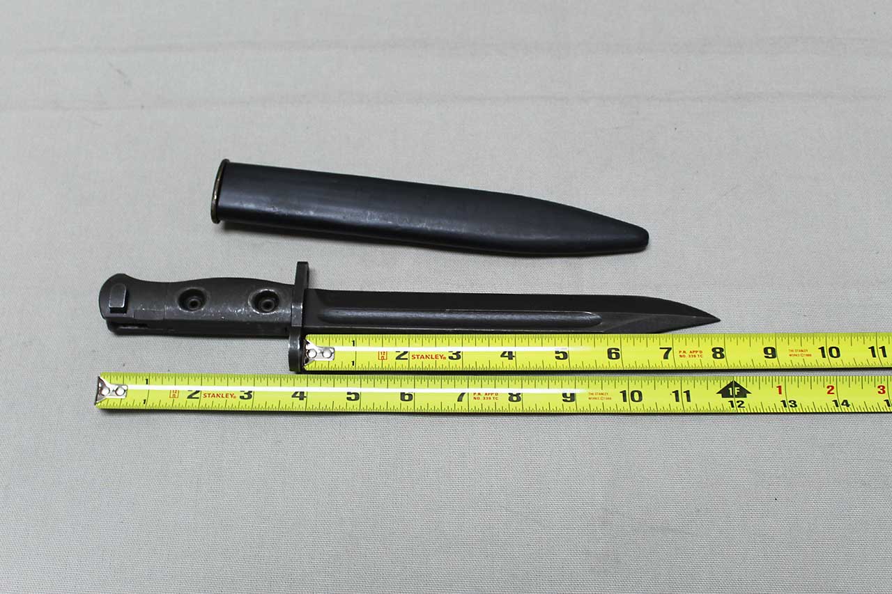 Australian Model L1A2 Bayonet. Blade approximately 8 inches in length. Worn condition.