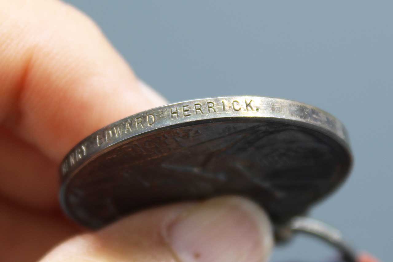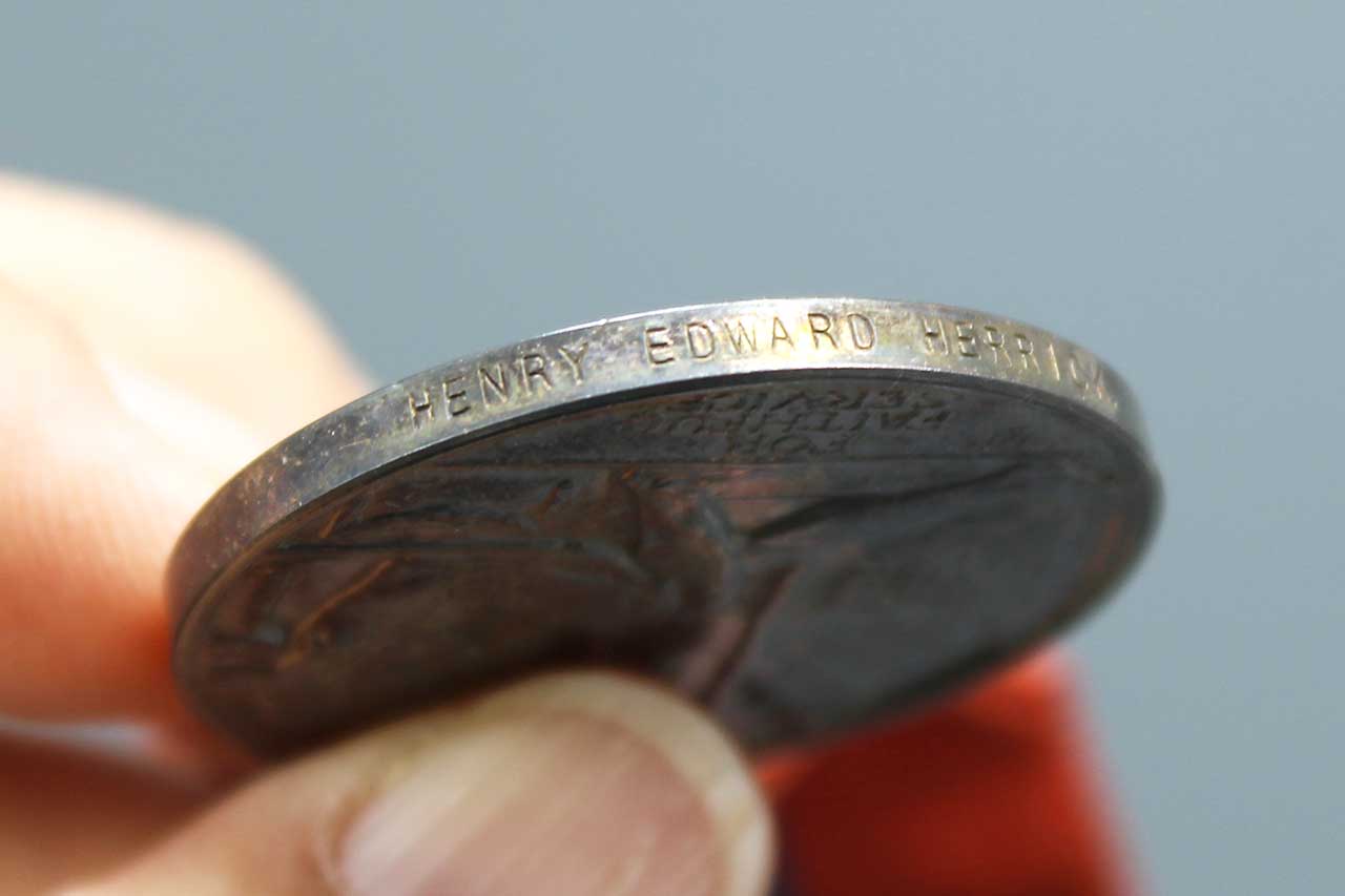 British Imperial Service Medal. George V first issue type (1920-1930). Named on rim: Henry Edward Herrick. Worn condition.