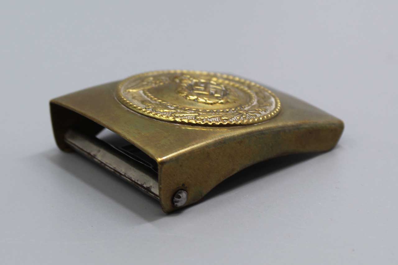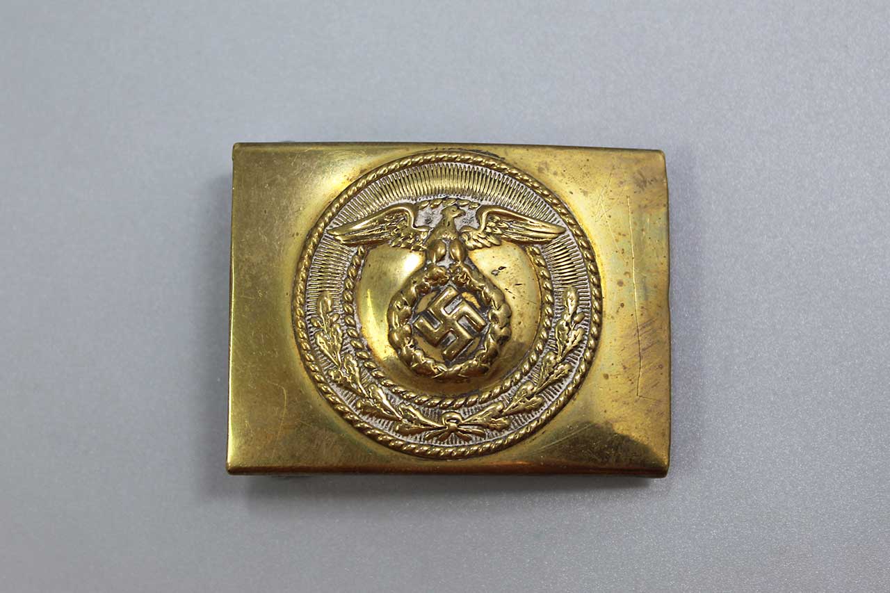 WW2 German SA (Sturmabteilung or Storm-troops) EM/NCO Buckle. Two-piece construction with brass base. Unmarked buckle. Worn condition.