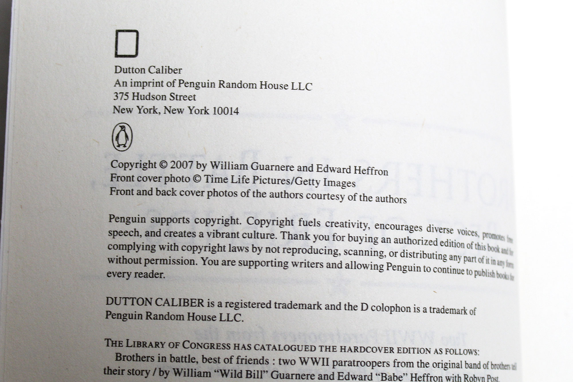 US Book Brothers in Battle by William Guarnere and Edward Heffron. Copyright 2007. Worn and used condition.