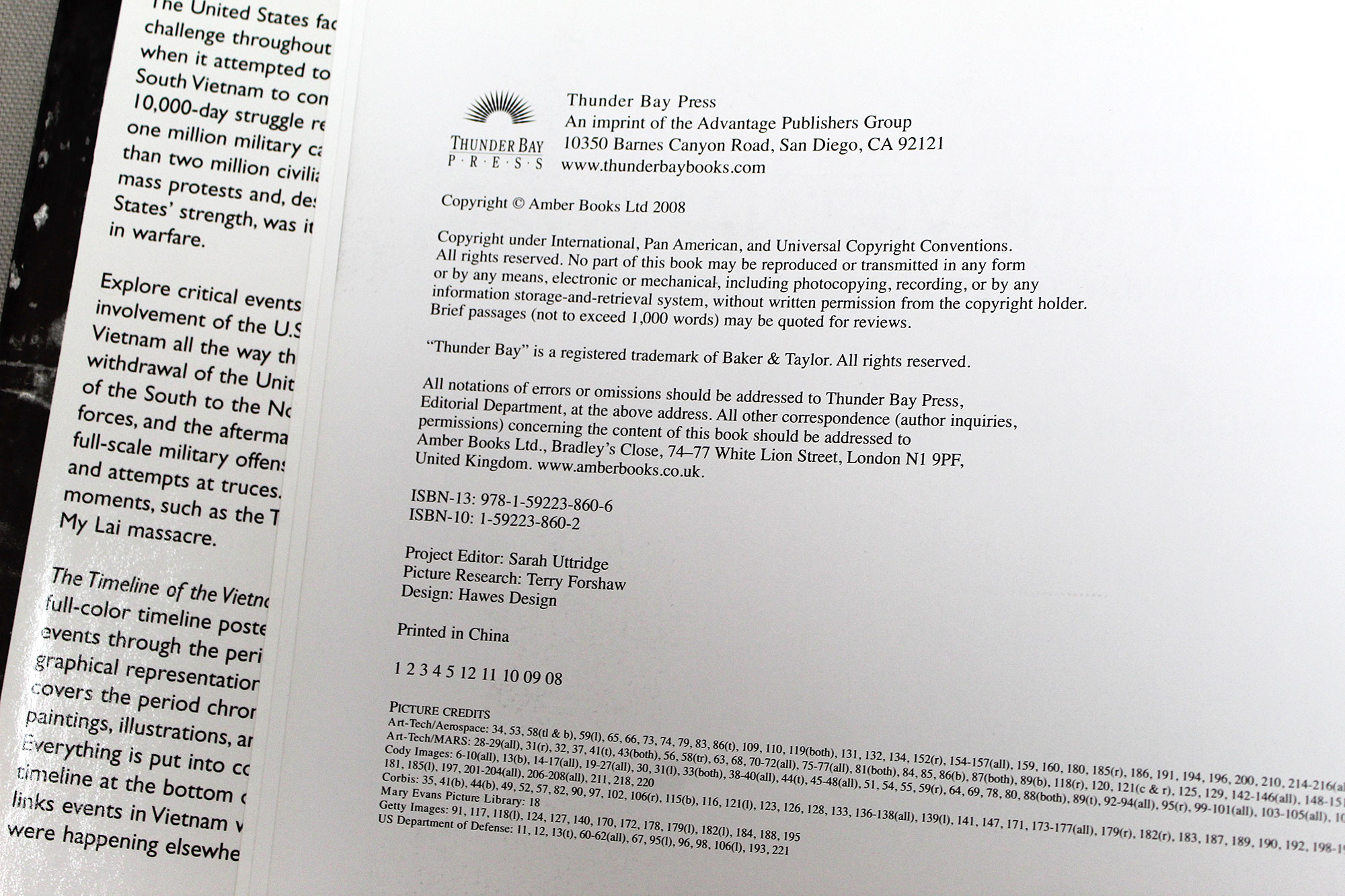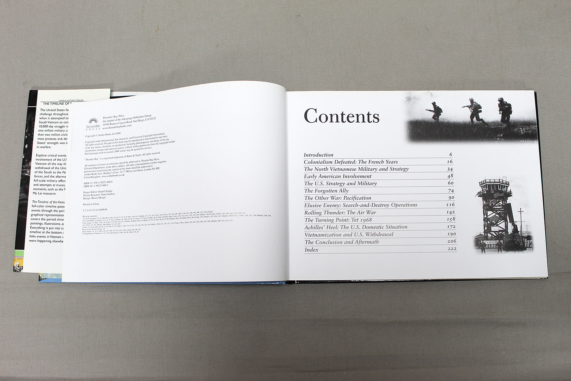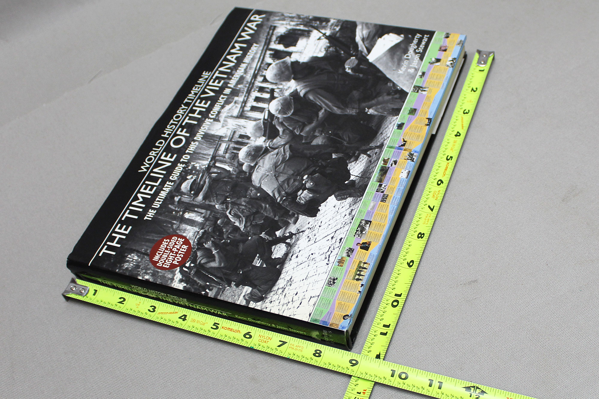 World History Timeline, The Timeline of the Vietnam War, The Ultimate Guide to this Divisive Conflict in American History Book by Kevin Dougherty and Jason Stewart. Copyright 2008. Size approximately 12 inches x 8 3/4 inches. Worn and used condition.