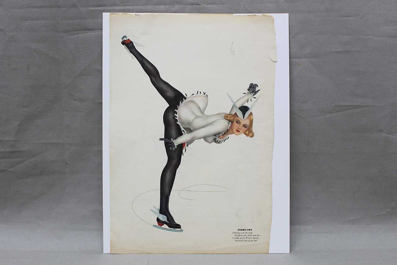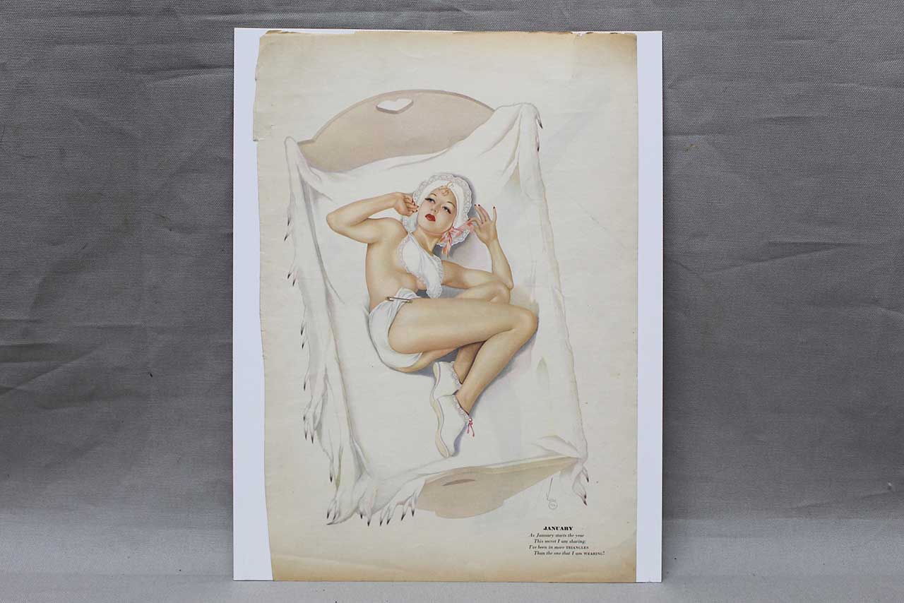 An original January and February Varga Girls pin-up print, cut from Esquire Magazine printed in the 1940s.