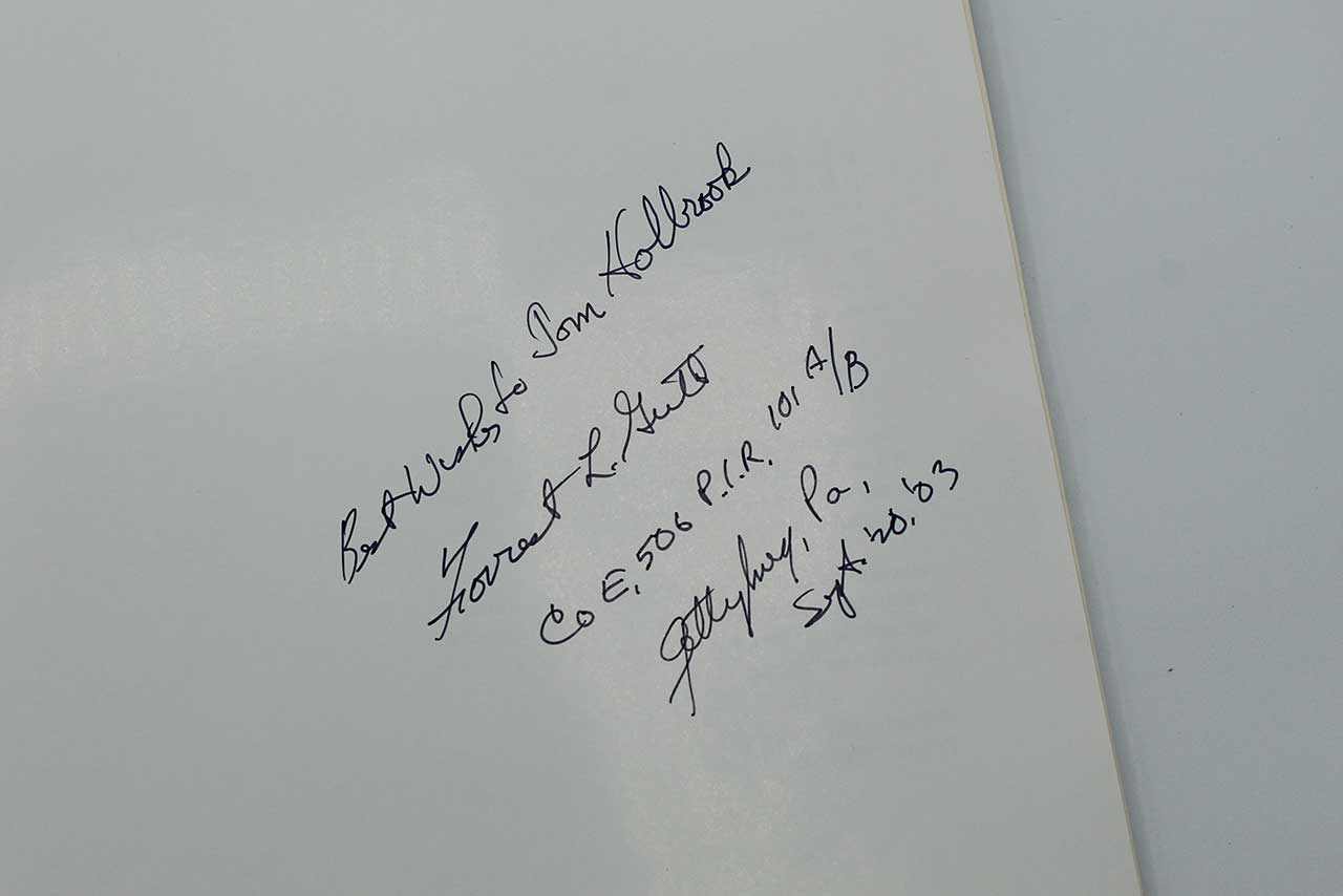 The Way We Were The Band of Brothers book. “E” Company 506th PIR 101st Airborne Division. Signed book along with signed picture and handwritten note. Worn condition.