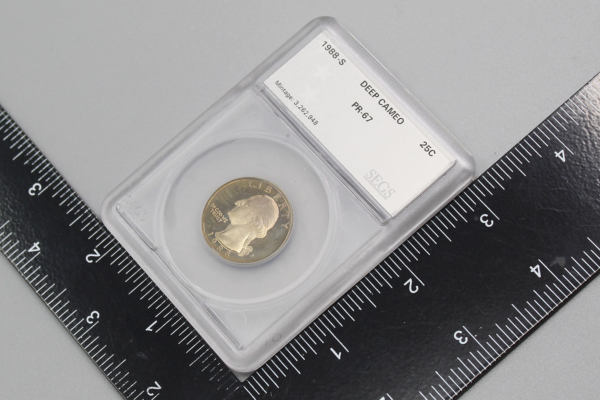 1988-S United States Quarter (25c) Coin. Graded Deep Cameo PR-67. Graded by SEGS.