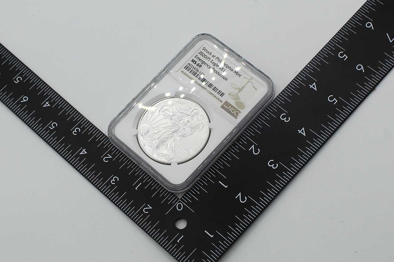 2020(P) American Silver Eagle One Dollar Coin NGC MS69. Silver Purity is 0.999, contains 1 troy oz of silver. Certified by NGC (one of the top two coin grading services). NGC encapsulation authenticates and protects the condition of the coin. Some wear to exterior plastic case.