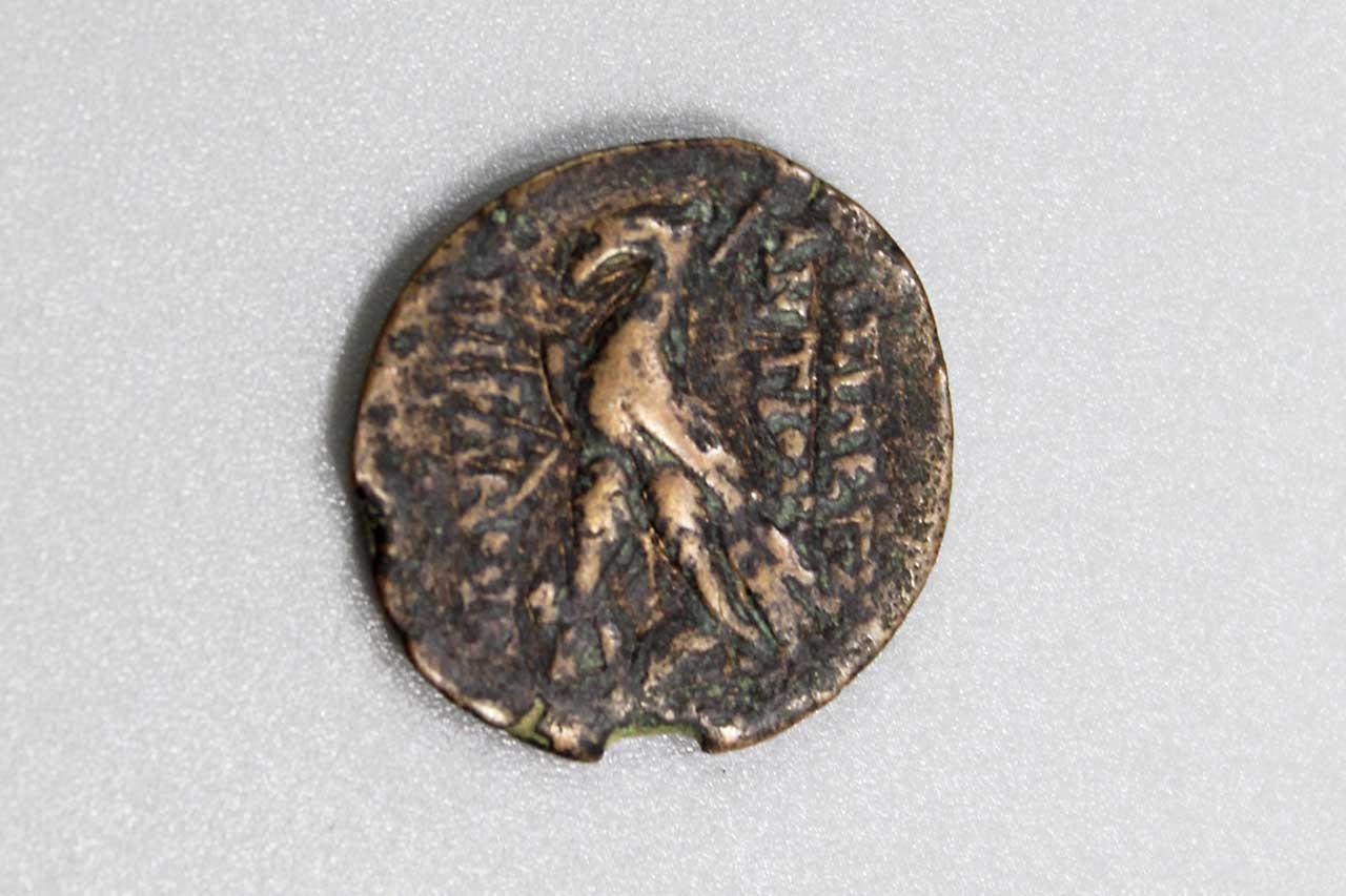 Seleucid Kingdom Antiochus VIII Bronze Coin 100 BC. Seaby 7154. Size approximately 3/4 inch across. Very heavily worn condition.