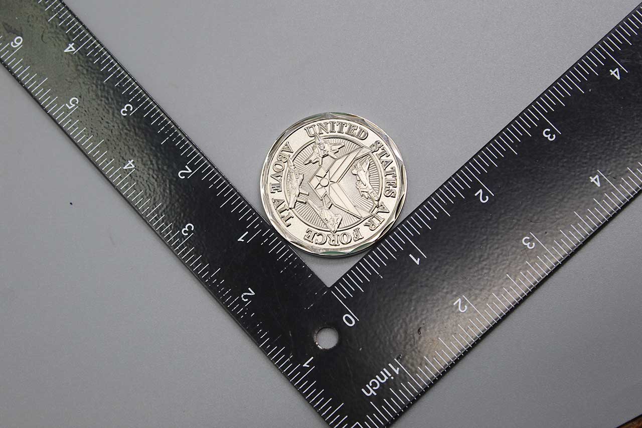 United States Air Force (USAF) Challenge Coin. Above All. Size approximately 1 5/8 inches across. Worn condition.