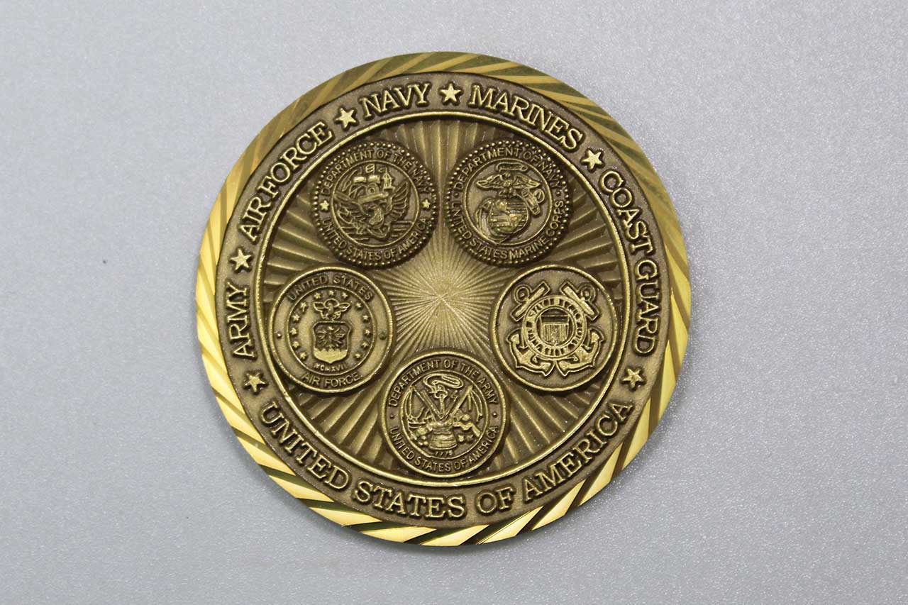 Additional Notes: A challenge coin is a small coin or medallion, bearing an organization’s insignia or emblem and carried by the organization’s members. Traditionally, they might be given to prove membership when asked. They are also collected by service members. Historically, challenge coins were presented by unit commanders in recognition of special achievement by a member of the unit. They could also be exchanged in recognition of visits to an organization.