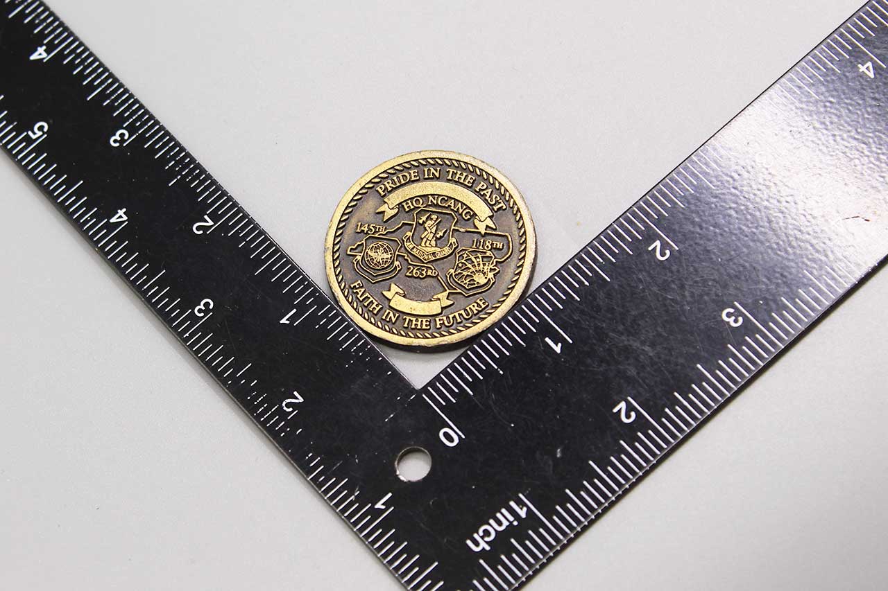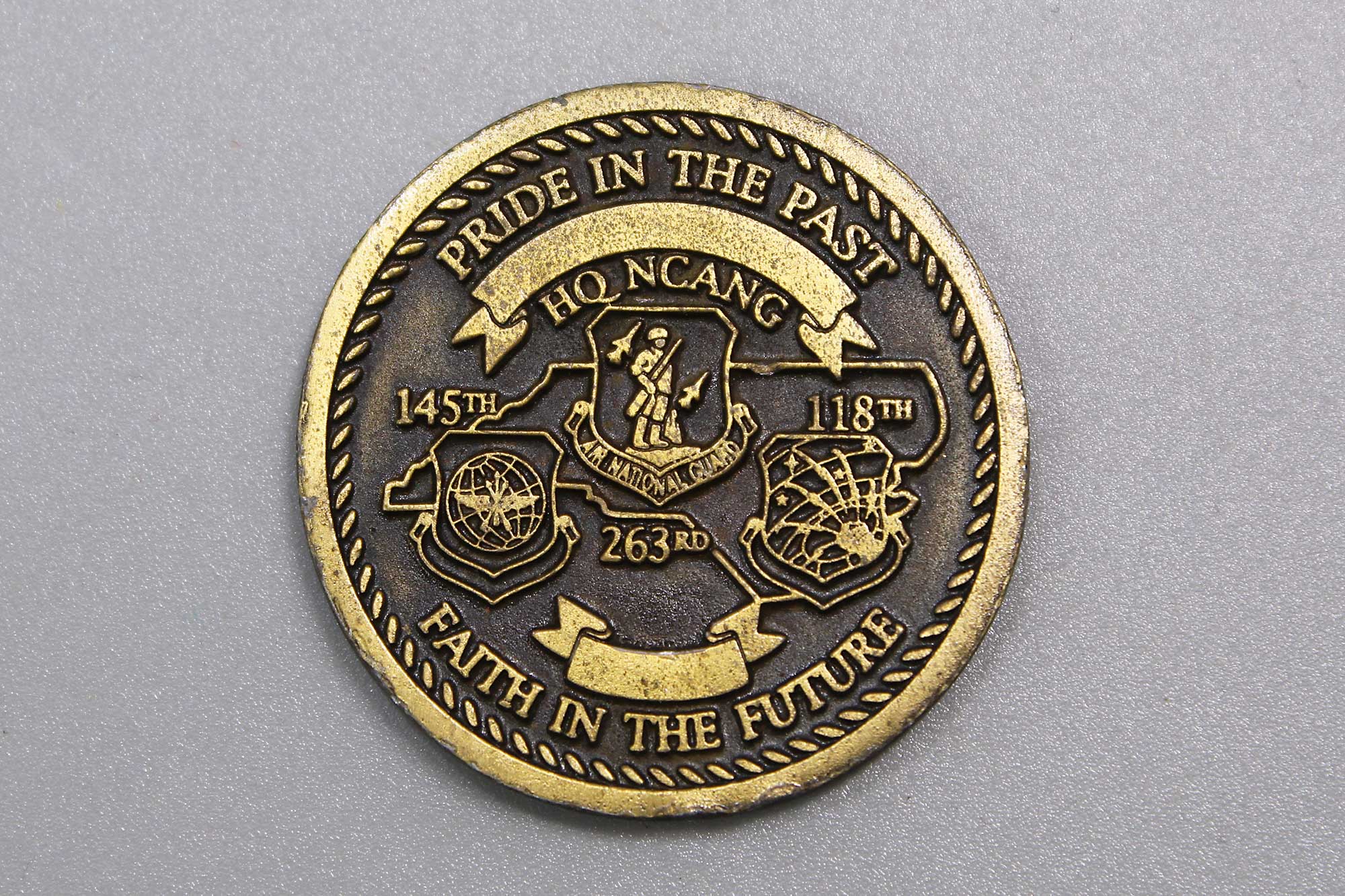 United States Challenge Coin. North Carolina Air National Guard 1948-1998, Pride in the Past, Faith in the Future. Size approximately 1 1/2 inches across. Worn condition.