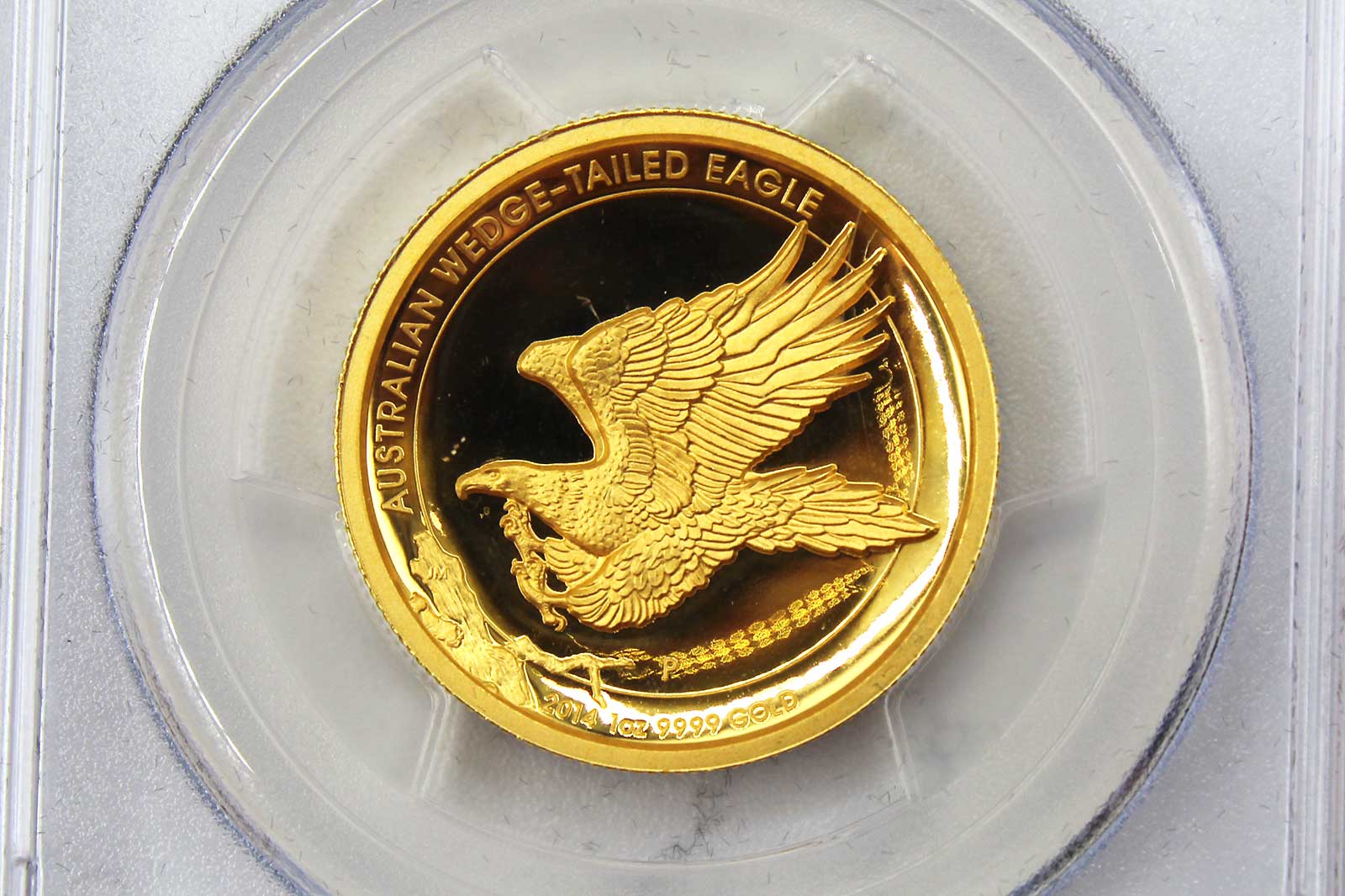 2014-P Australia 1oz Gold HR (High Relief) Wedge Tail Eagle PR69DCAM PCGS Mercanti signed. Certified by PCGS (one of the top two coin grading services). PCGS encapsulation authenticates and protects the condition of the coin.