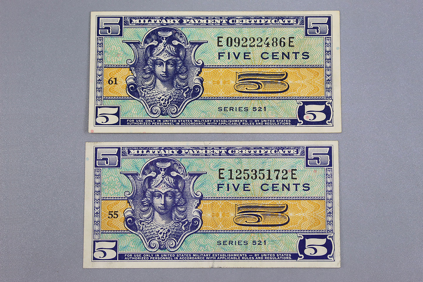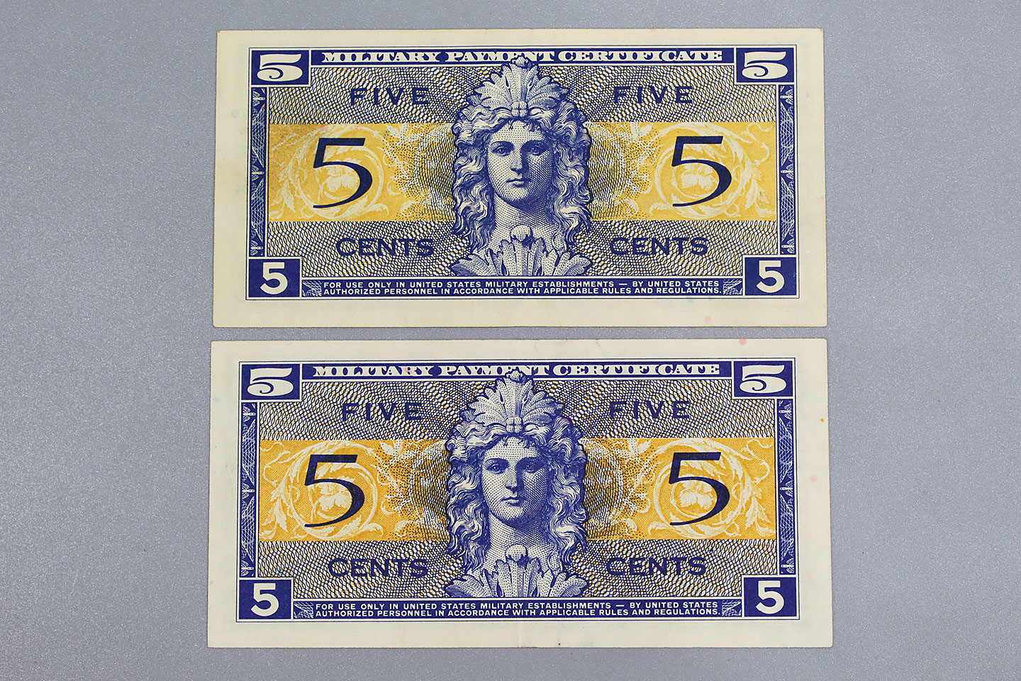 Additional Notes: Military payment certificates or MPC was a form of currency used to pay U.S. military personnel in certain foreign countries. It was used from approximately the end of WW2 until a few months after the end of U.S. participation in the Vietnam War (or from about 1946 until 1973). MPC utilized layers of line lithography to create colorful banknotes that could be produced cheaply. Thirteen series of MPC were issued between 1946 and 1973, with varied designs.