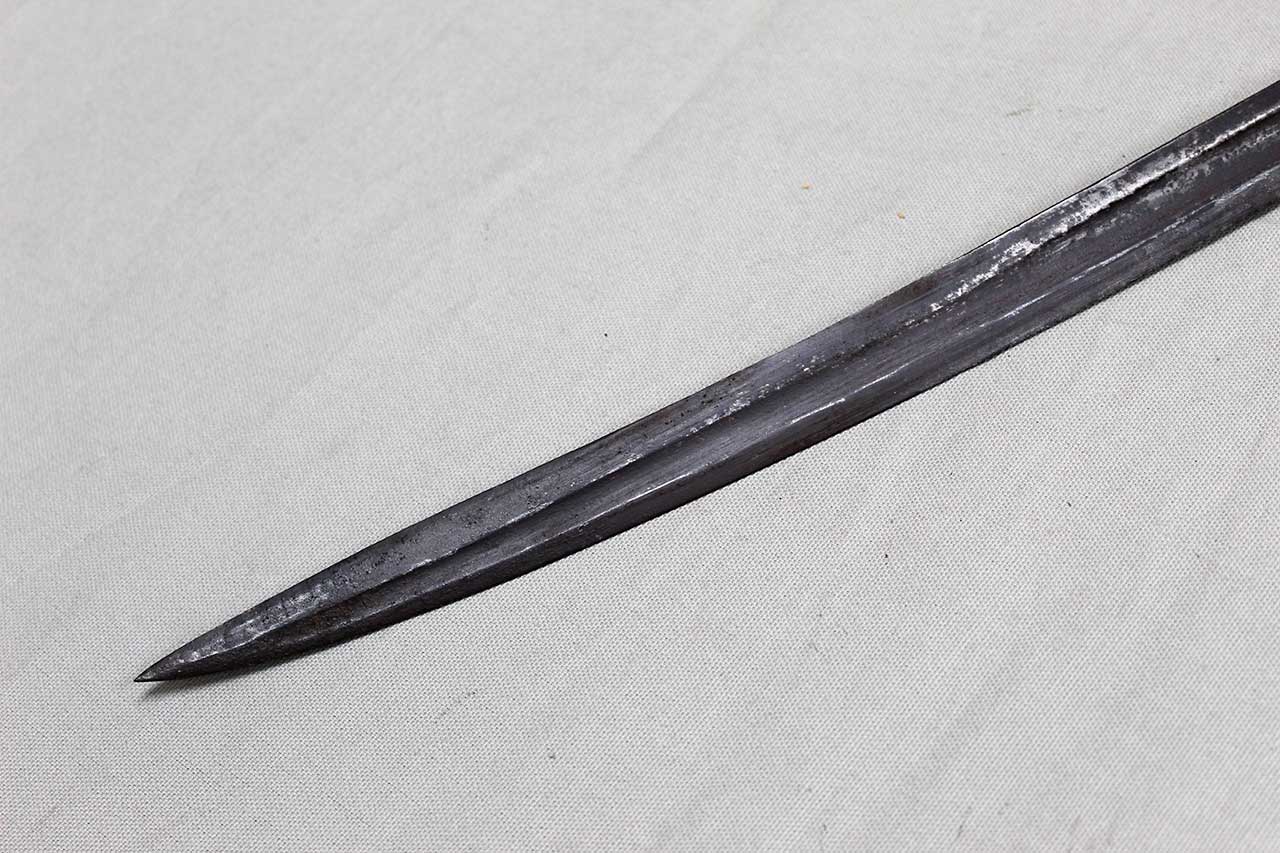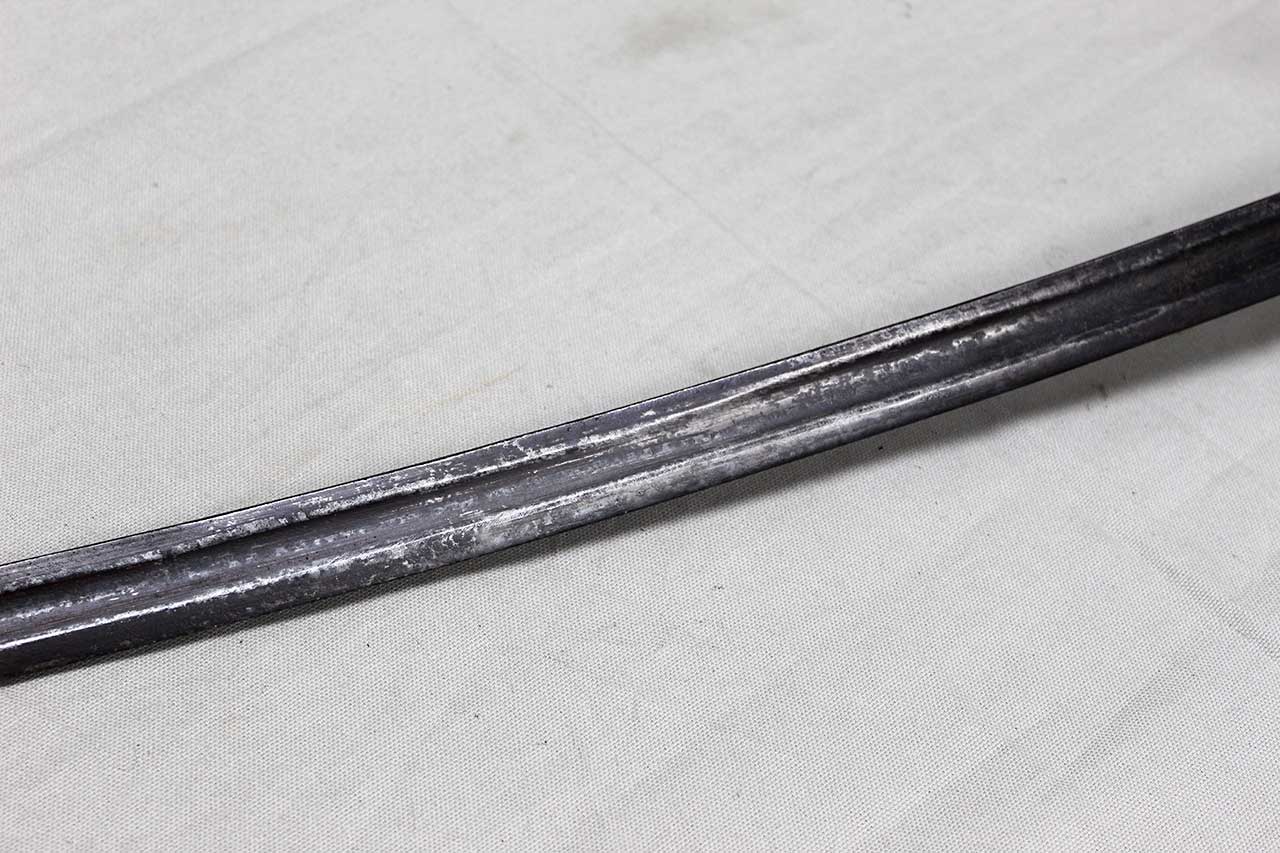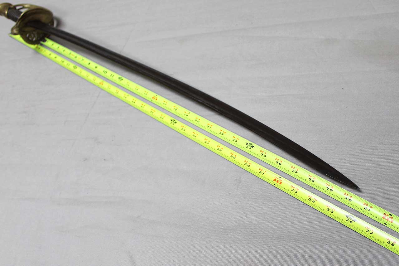 American Civil War Foot Officers Sword. No Scabbard. Leather grip with twisted wire wrap in good condition. Blade length approximately 30 inches. Overall length approximately 35 1/2 inches. No markings I can find anywhere on this sword. Very heavily worn condition.