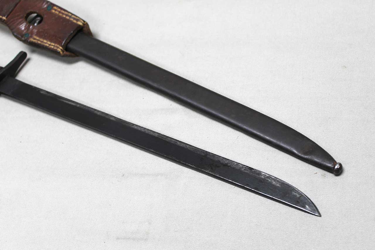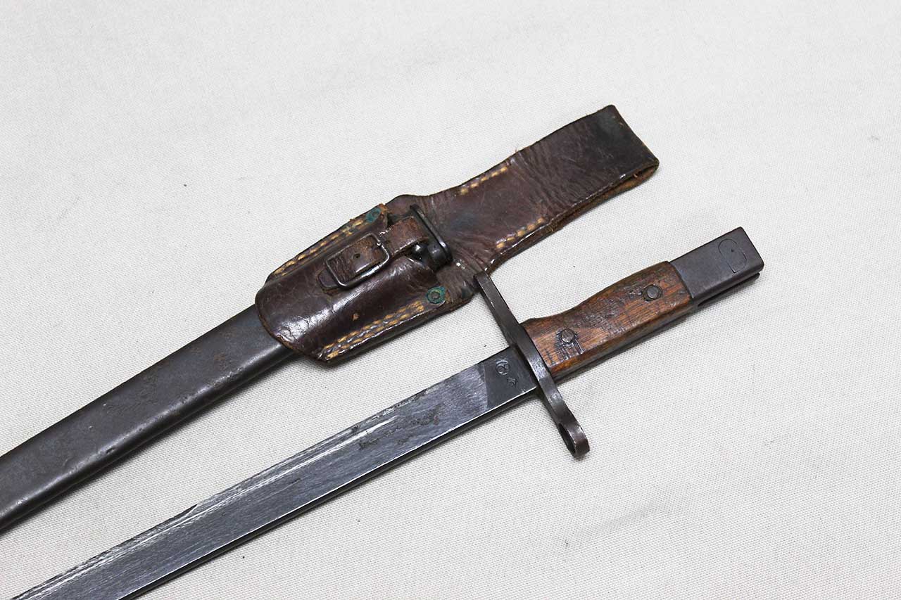 Additional Notes: The Japanese Type 30 bayonet was a bayonet designed for the Imperial Japanese Army (IJA) to be used with the Arisaka Type 30 Rifle and was later used on the Type 38 and Type 99 rifles and Types 96 and 99 light machine guns. Some 8.4 million were produced, and it remained in front-line use from the Russo-Japanese War to the end of WW2. All Japanese infantrymen were issued with the Type 30, whether they were armed with a rifle or pistol, or even if they were unarmed.