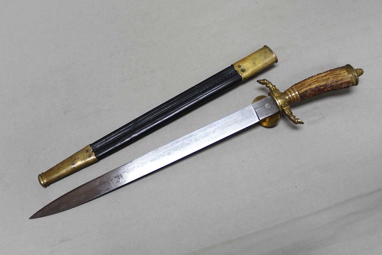 Additional Notes: An Imperial German Hirschfänger (deer catcher) is a type of hunting dagger traditionally used in Germany to kill deer and boar, especially during the fancy hunts of the German nobility. It evolved from medieval hunting swords used by mounted hunters and is typically 18–30 inches in overall length.