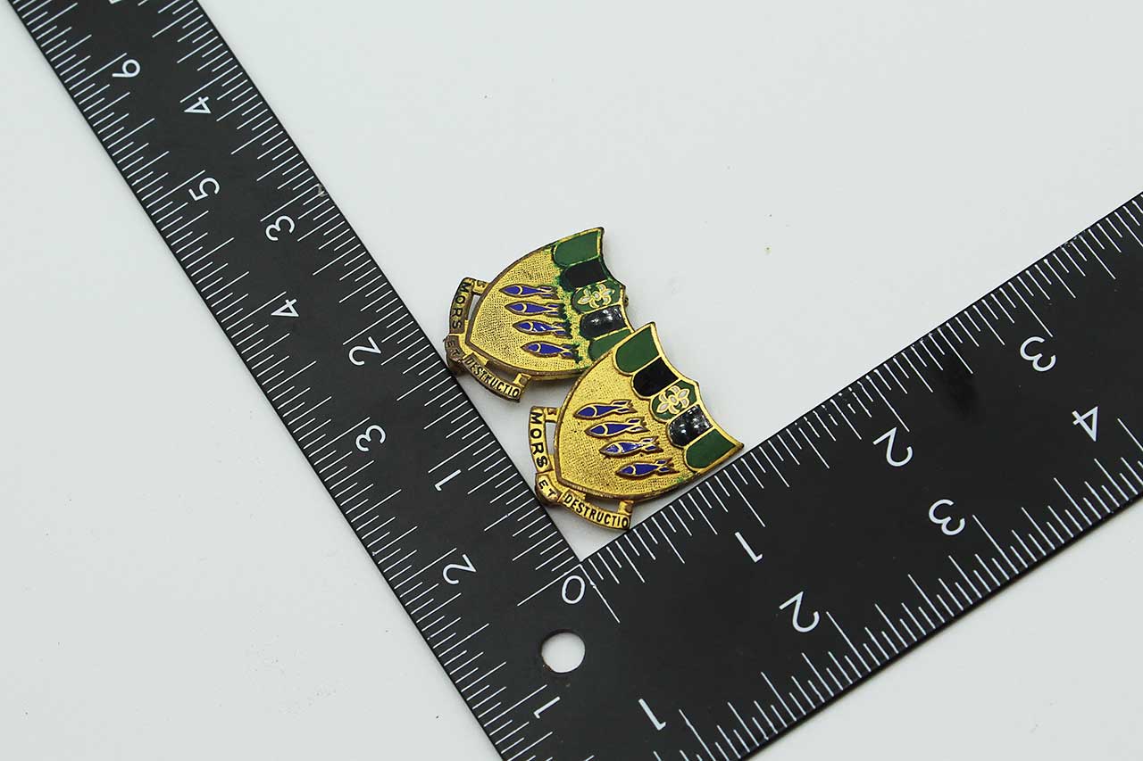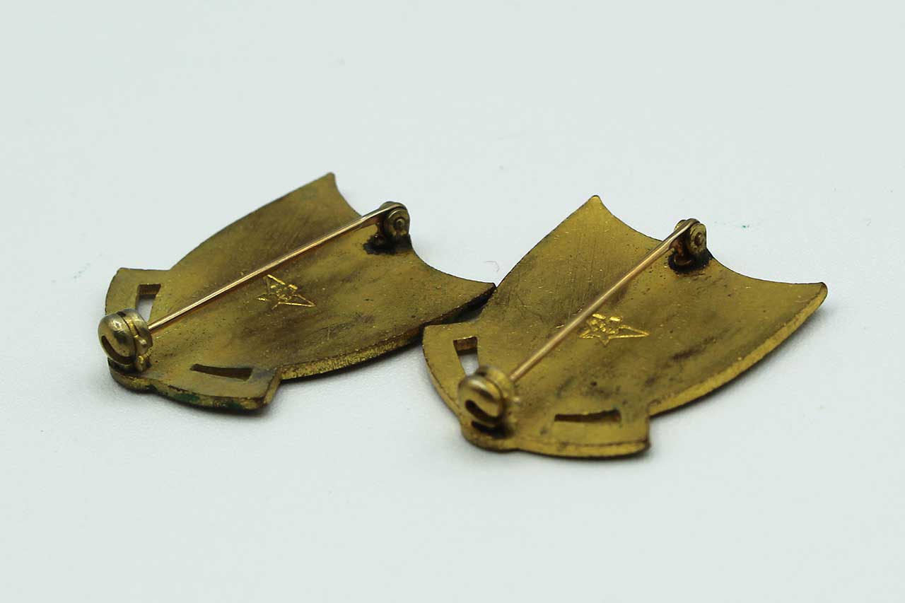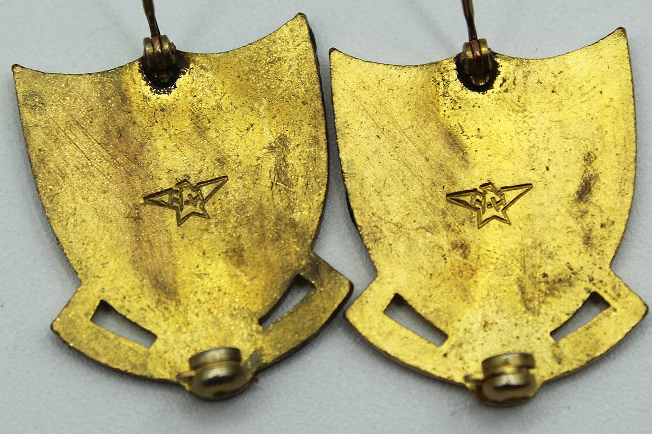 Pre-WW2 US Army Air Corps 2nd Bombardment Group Distinctive Insiginia (DI) pair. Pin back. Pre-1940s era (pre-ww2). H-H marker logo on back. Worn condition.