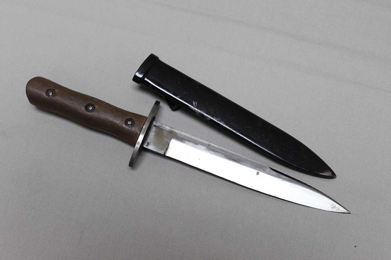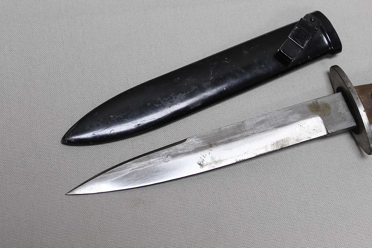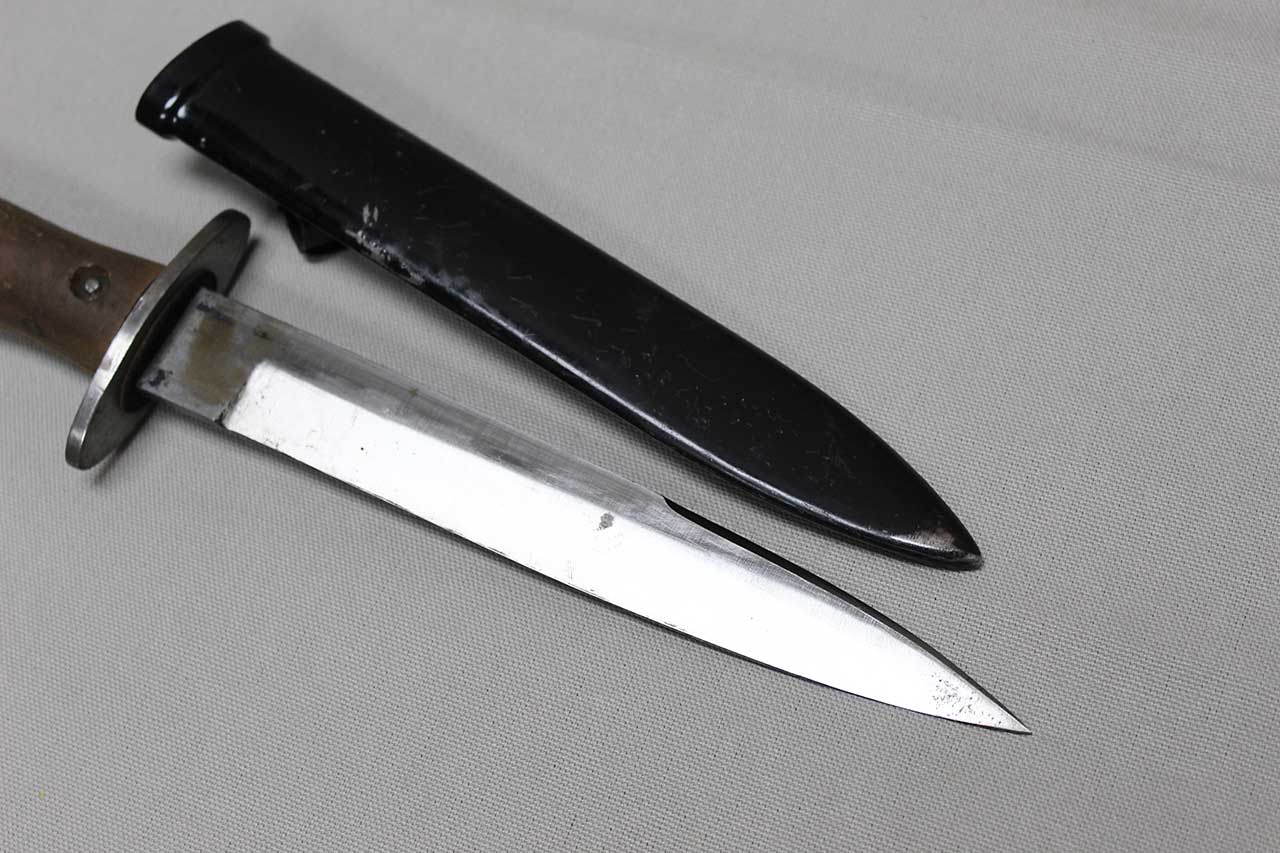 Additional Notes: The M39 Fighting Knife, also known as the Pugnale M1939, was a combat dagger issued to Italian troops during WW2. It was primarily used by paratroopers, sapper units, and other assault troops. The design was influenced by the Austrian Sturmesser Model 1917, which had been widely used by Italian forces between the wars. The knife was typically issued to assault troops, but later in the war, it was also used by Camice Nere battalions, the Navy’s S. Marco regiment, and other military branches. Some photos show Italian SS, Decima MAS, and paratroopers proudly carrying the M39 at their belts.
