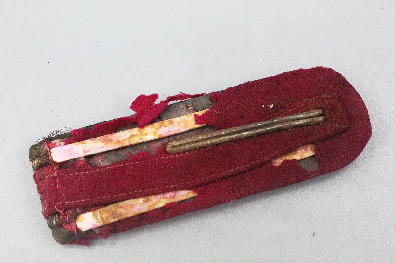 WW2 German Volunteer Fire Police single shoulder strap. Slip-on strap with button. Very heavily worn and damaged condition.
