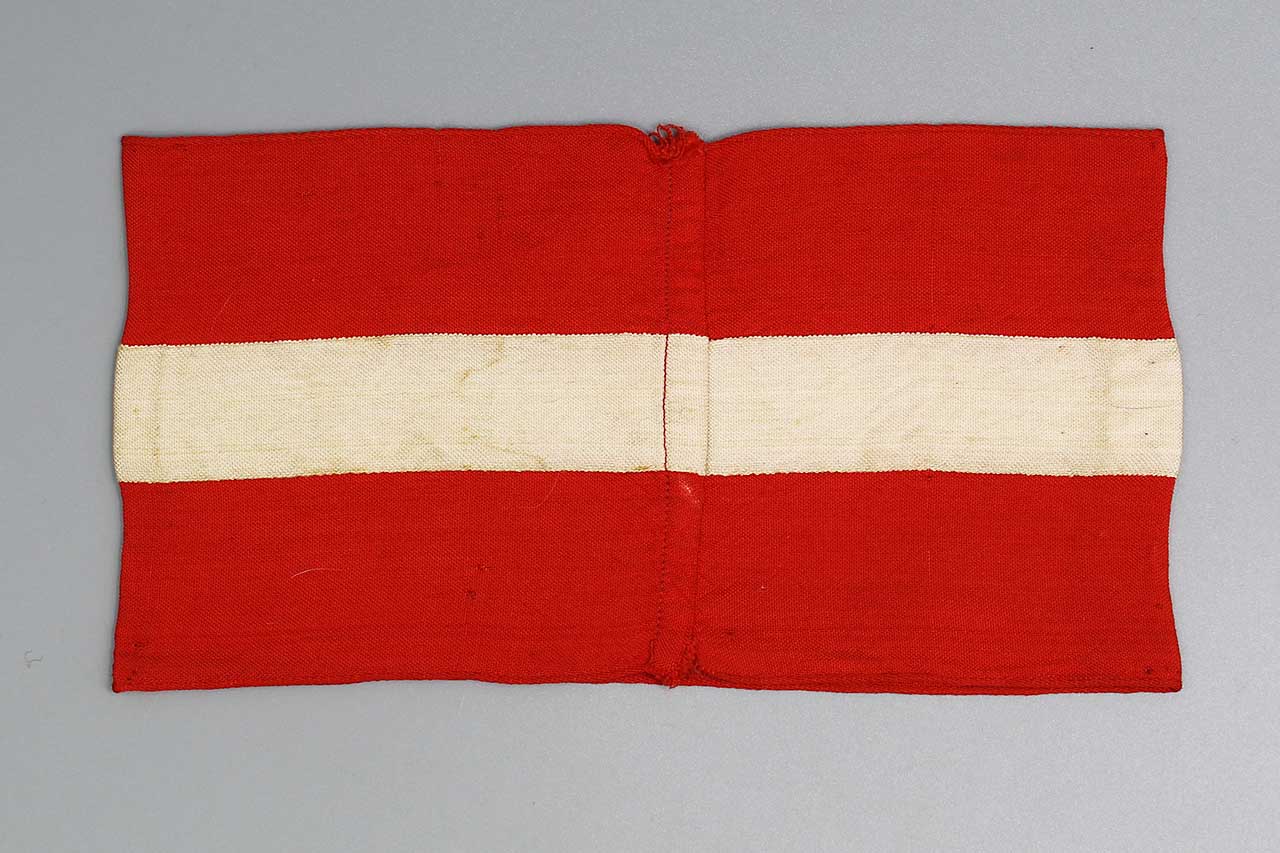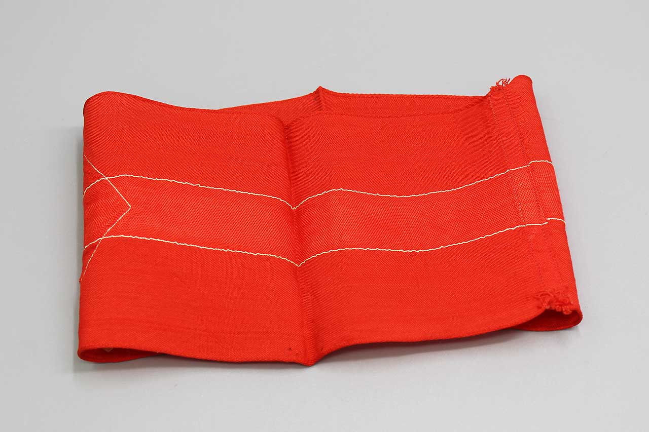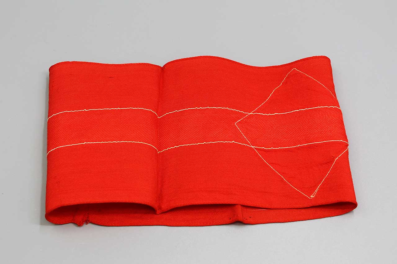 WW2 German HJ Armband. Multi-piece construction red rayon armband. Worn condition.