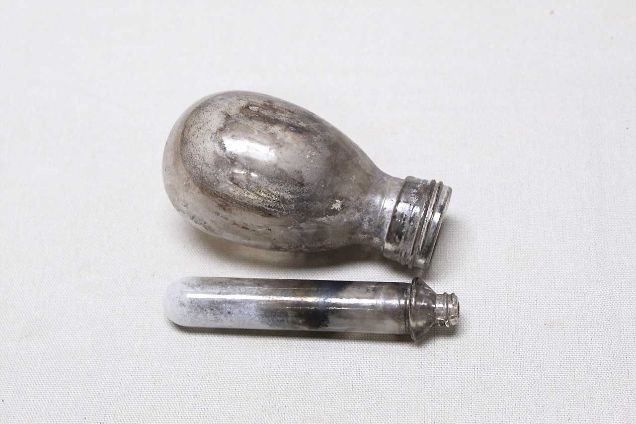 WW2 German 2-Piece Glass Smoke Device (Grenade). Only the glass portions. Inert. Blendkorper (smoke screen grenade). Very heavily worn condition.