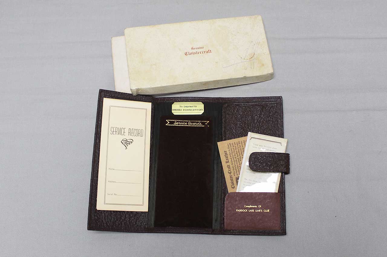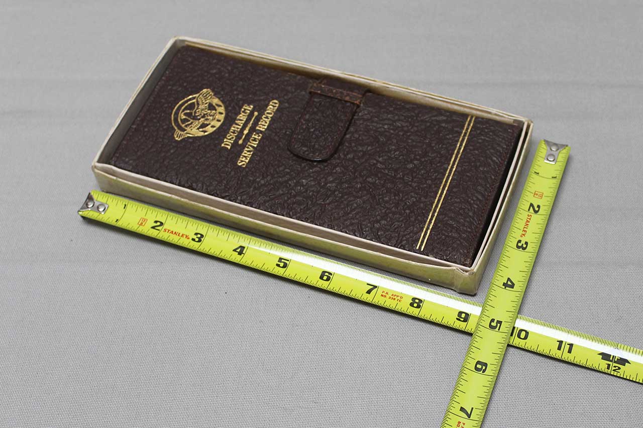 United States Honorable Discharge Service Folder in Box. This appears to be unissued still in box. Most likely 1940s-1950s (ww2-Korea) era. Size approximately 9 inches x 4 1/4 inches.