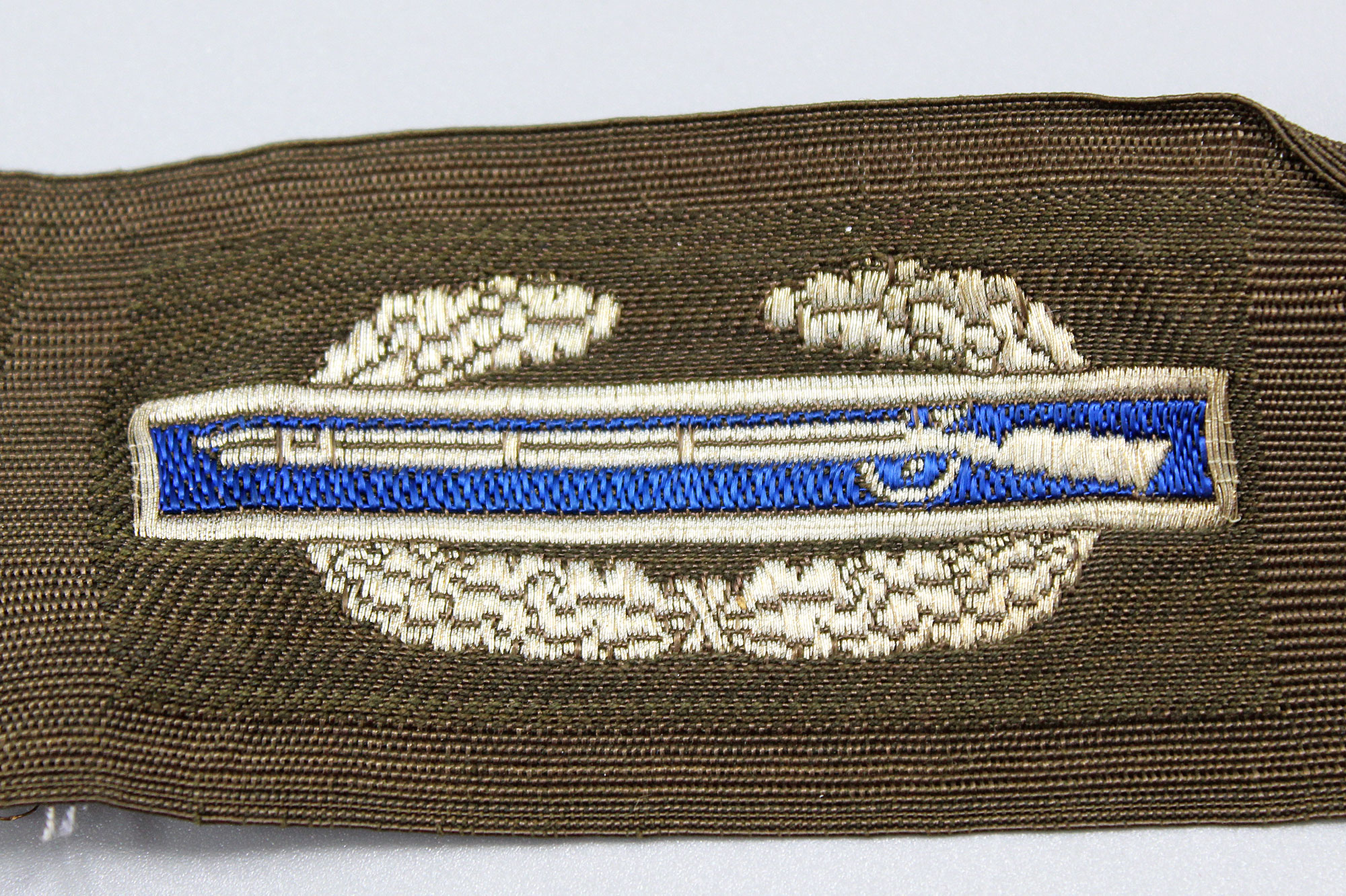 U.S. WW2 occupation era Combat Infantryman Badge bevo cloth insignia. German occupation made insignia.