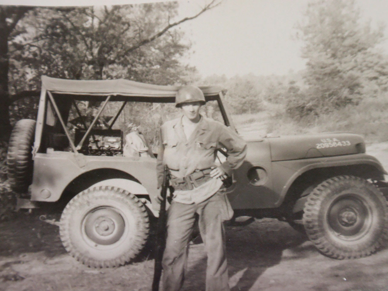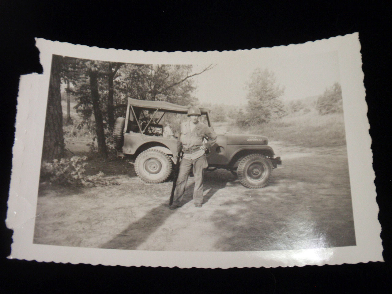 U.S. WW2 Picture of Soldier with Jeep. Size approx 5 1/2″ X 3 1/2″.