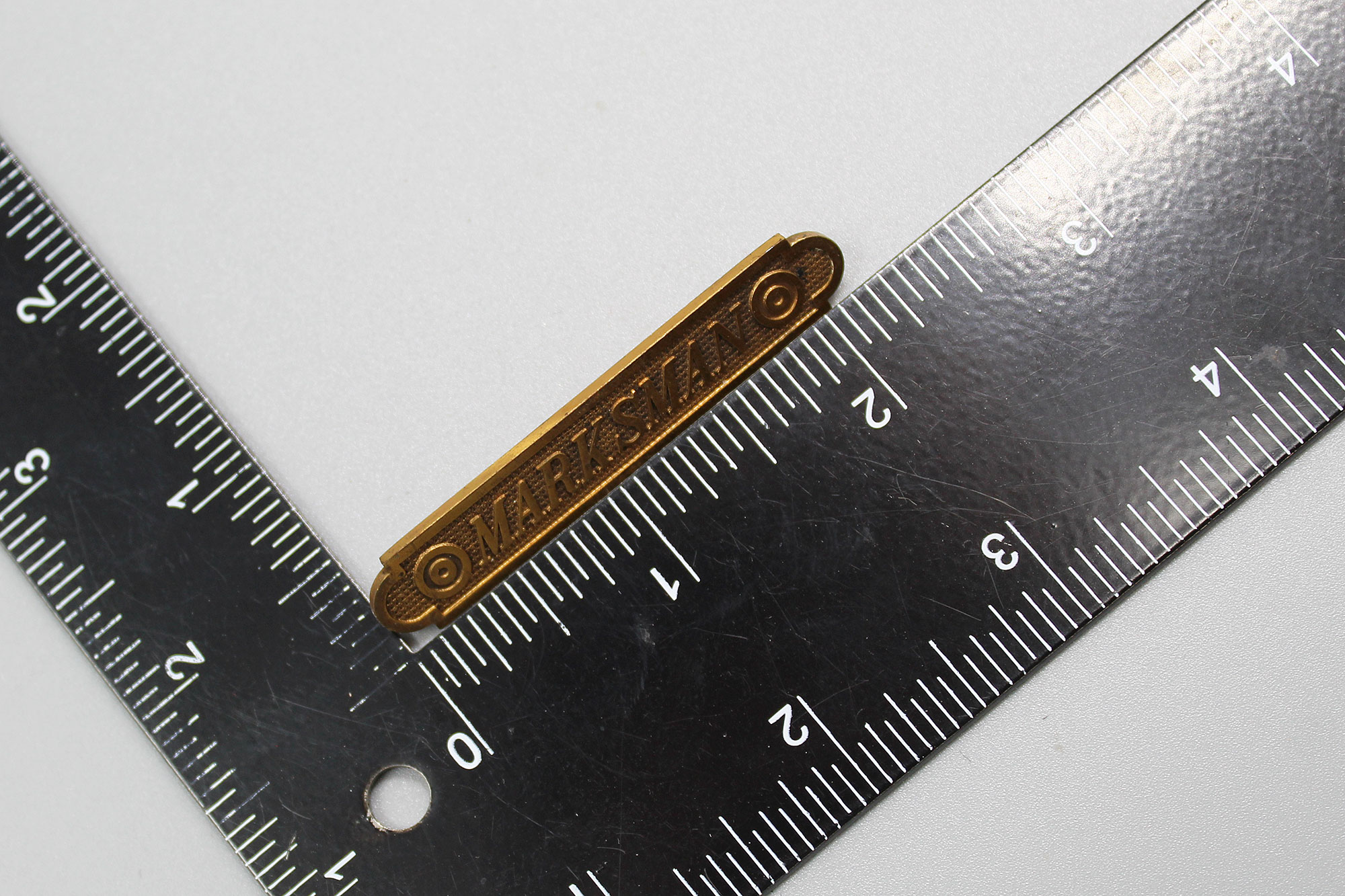 United States National Guard Marksman Bar in gilt. Pin back. Two ring variation. I believe this one is most likely 1920s-1940s (pre-ww2) era. Worn condition.