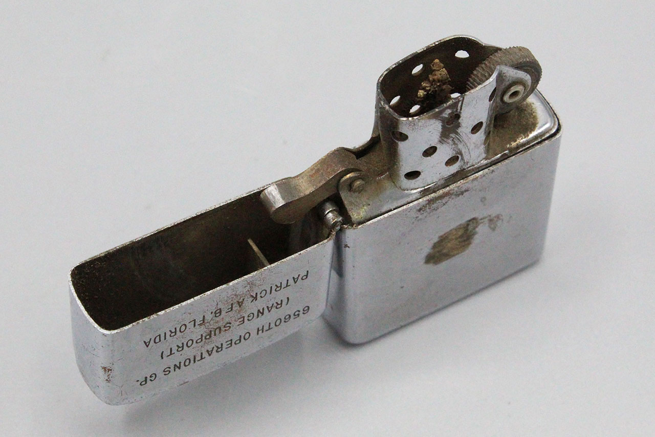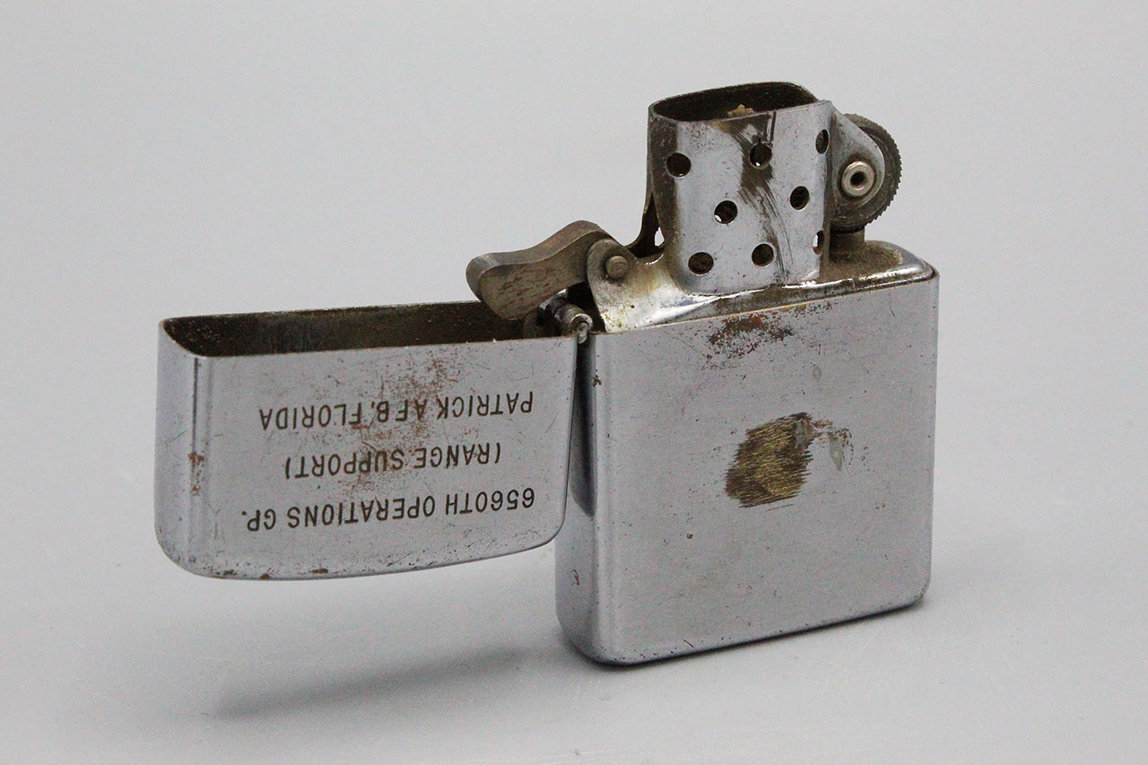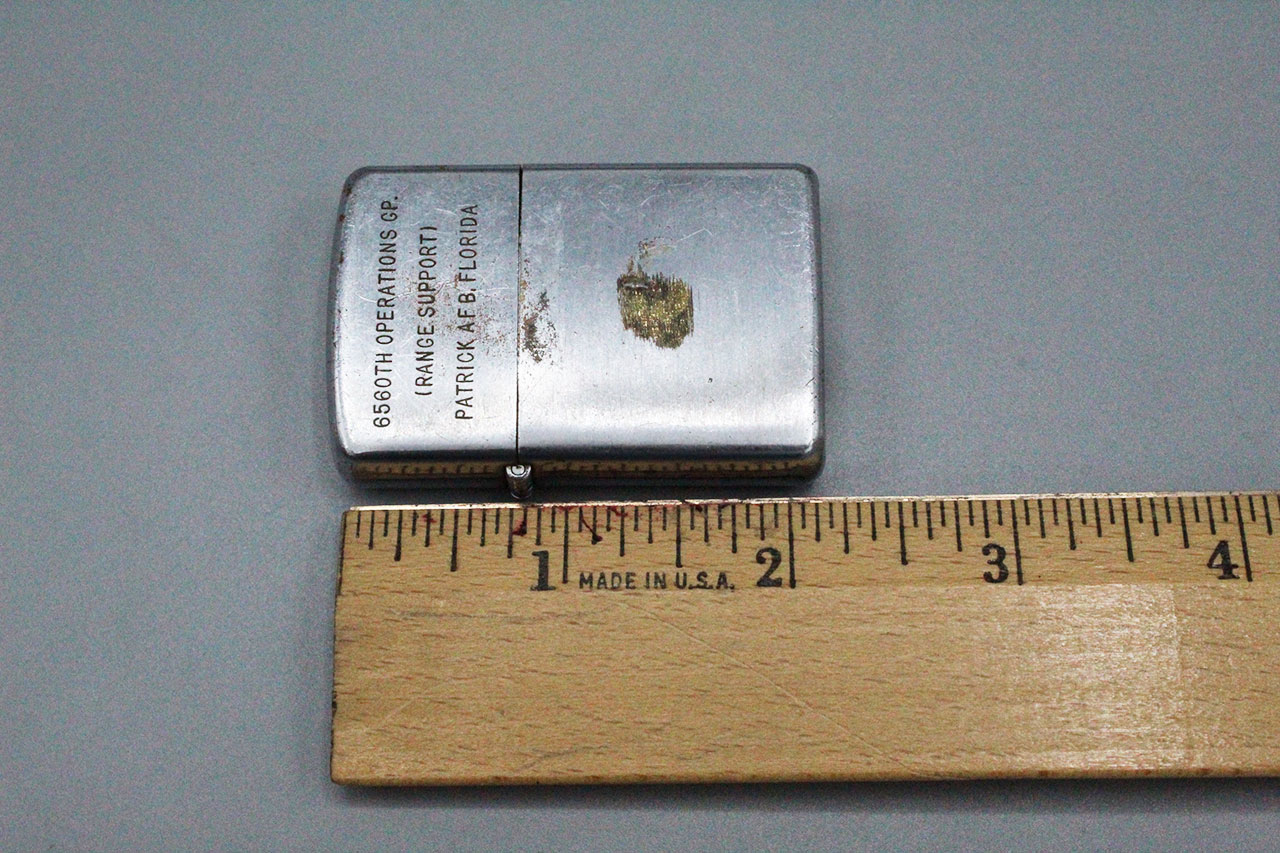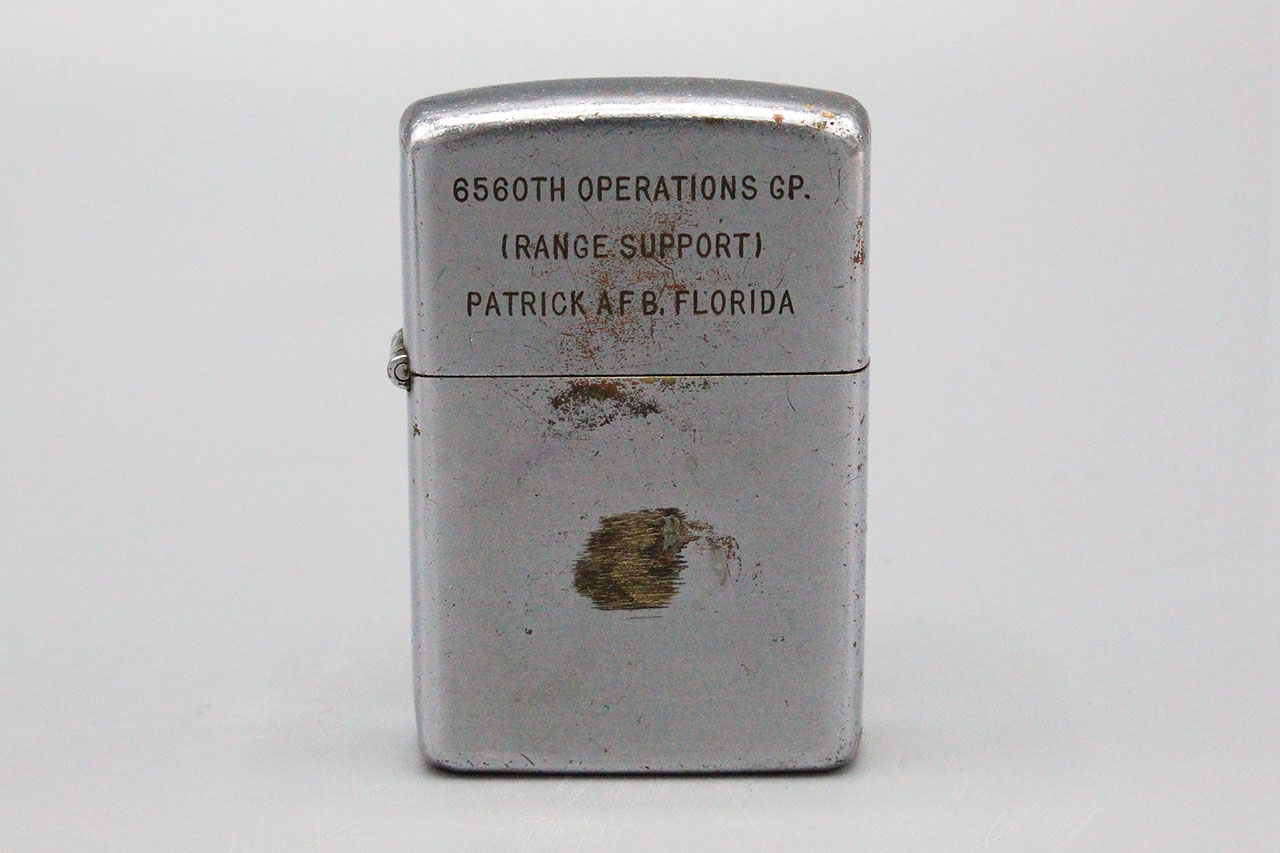 U.S. Lighter with engraving for 6560th Operations GP. (Range Support) Patrick AFB Florida. Has several scuffs to front as well where you can see the brass under the chrome plating. Maker marked on bottom Vulcan JAPAN. I believe this is 1960s-1970s era.