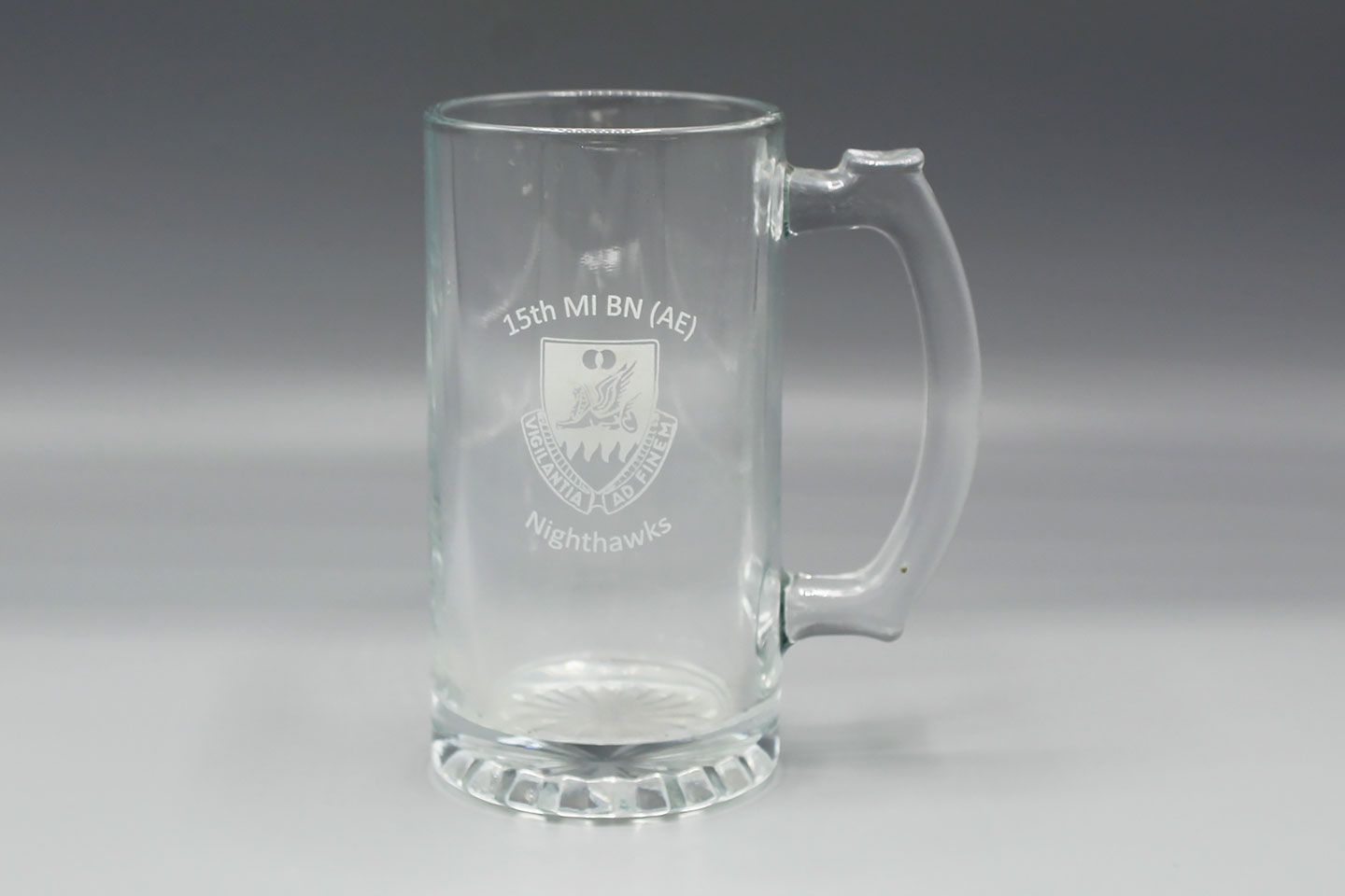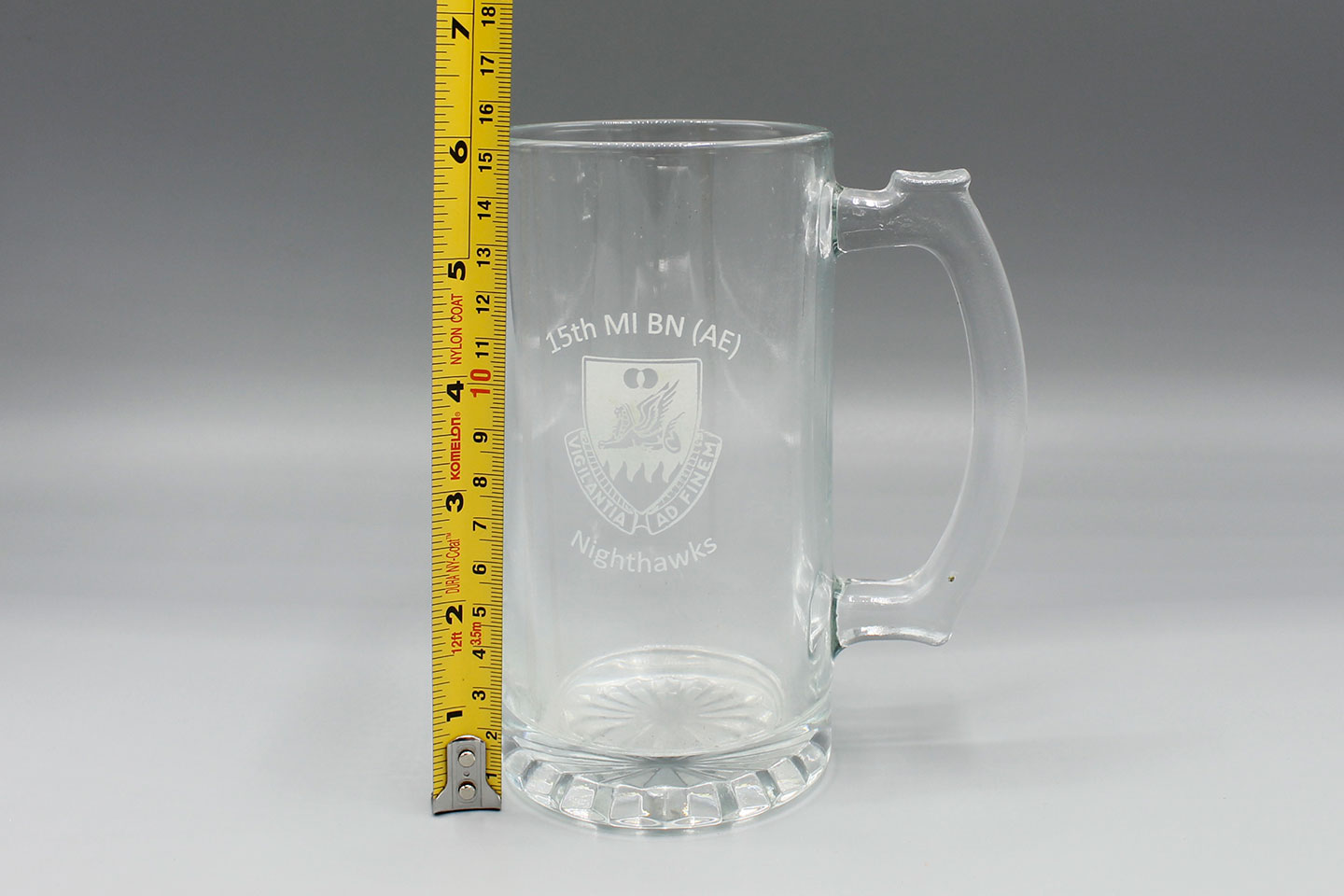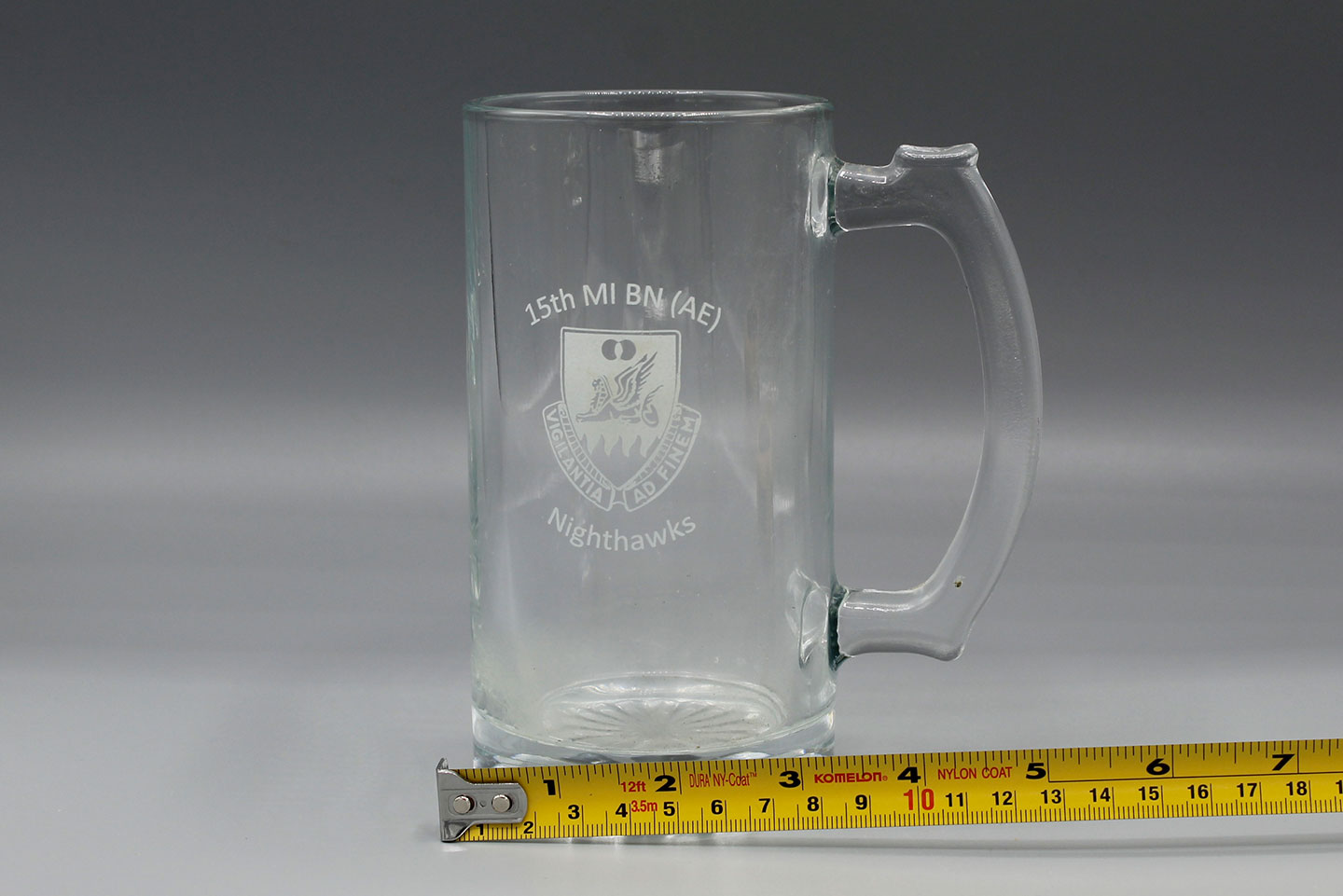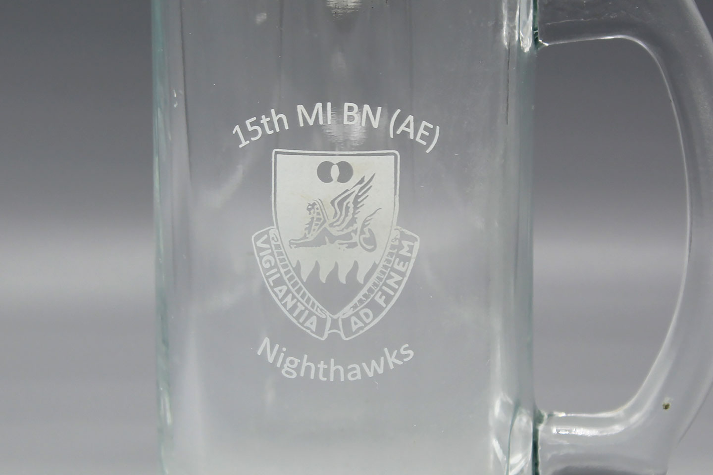 U.S. 15th MI BN (AE) Nighthawks Glass. Width of base approximately 3 1/4 inches across and approximately 6 inches in height. Worn and used condition.