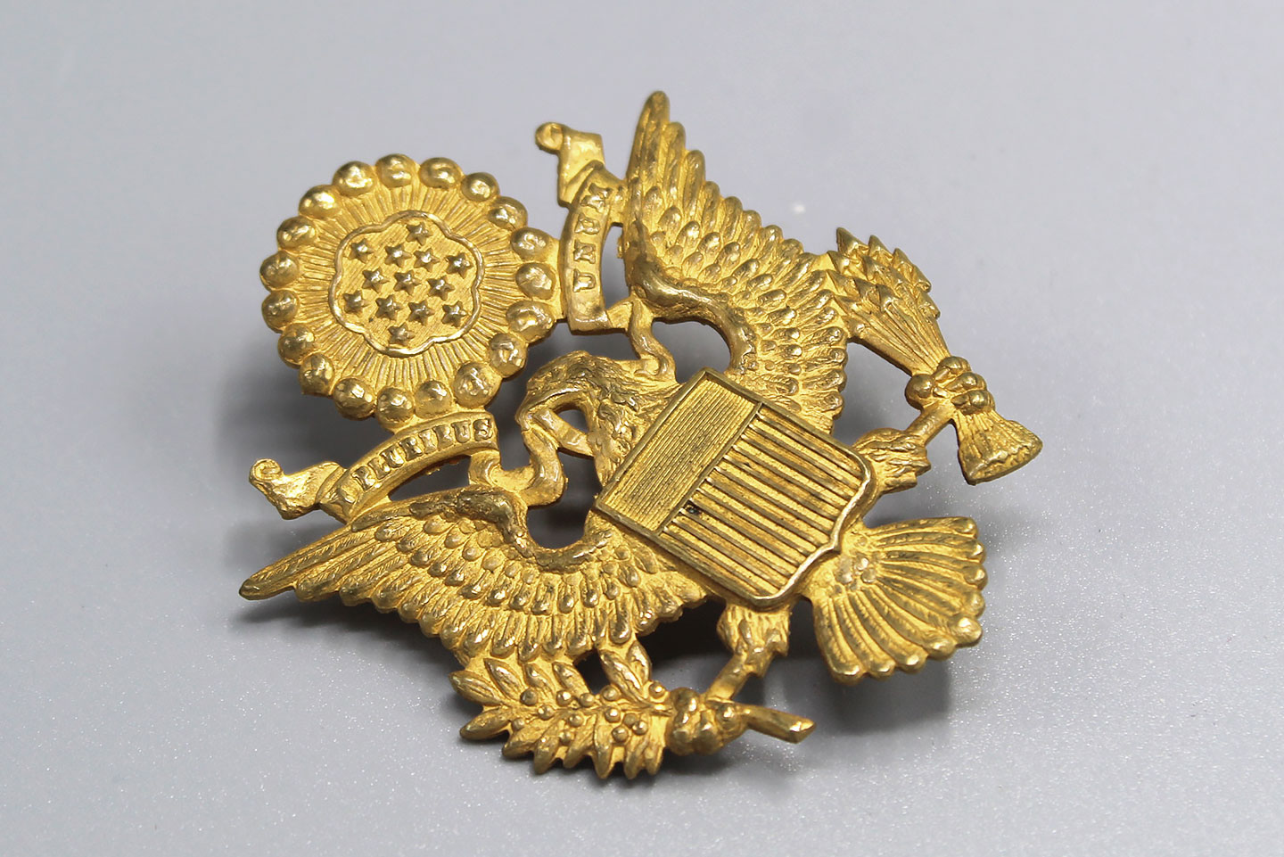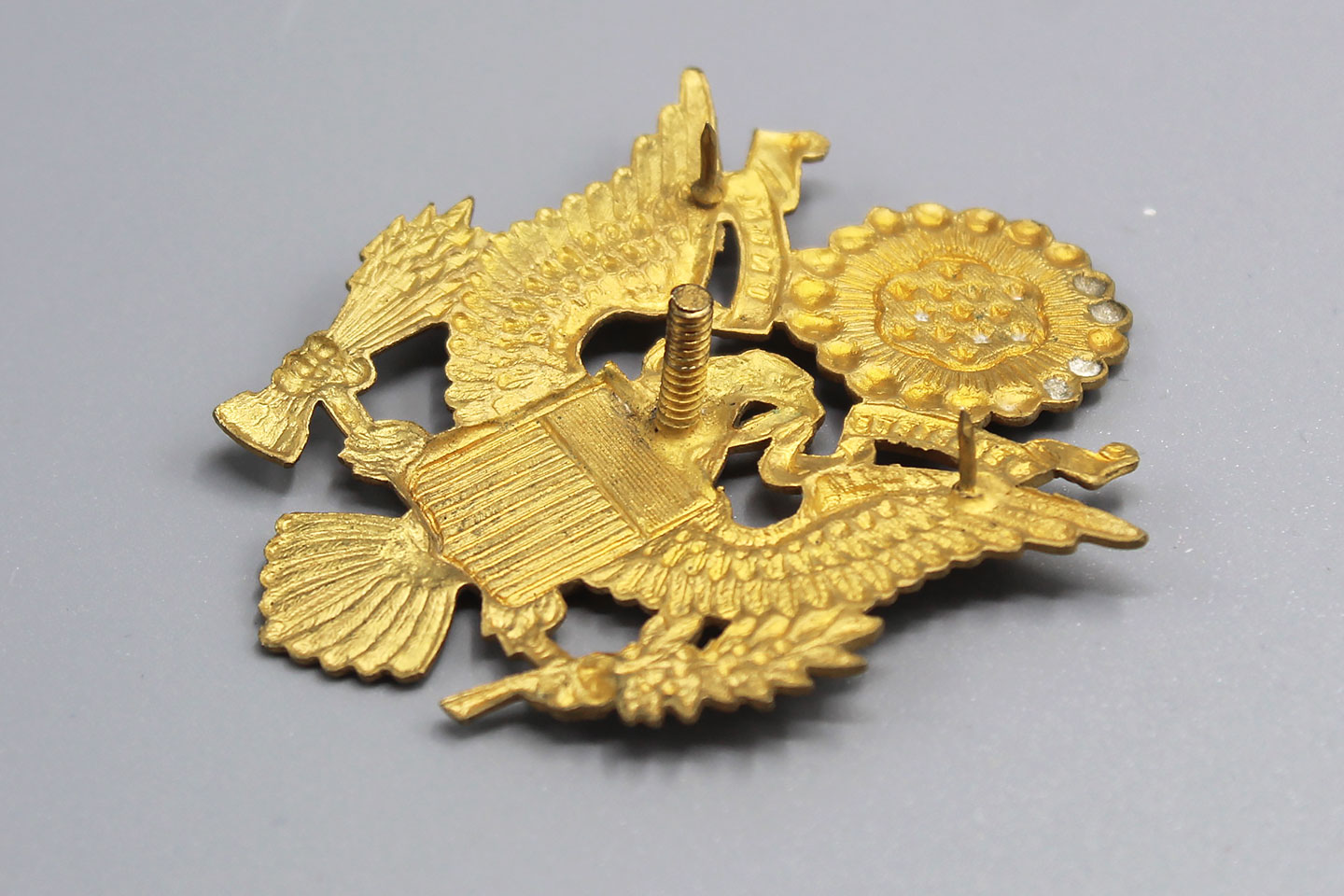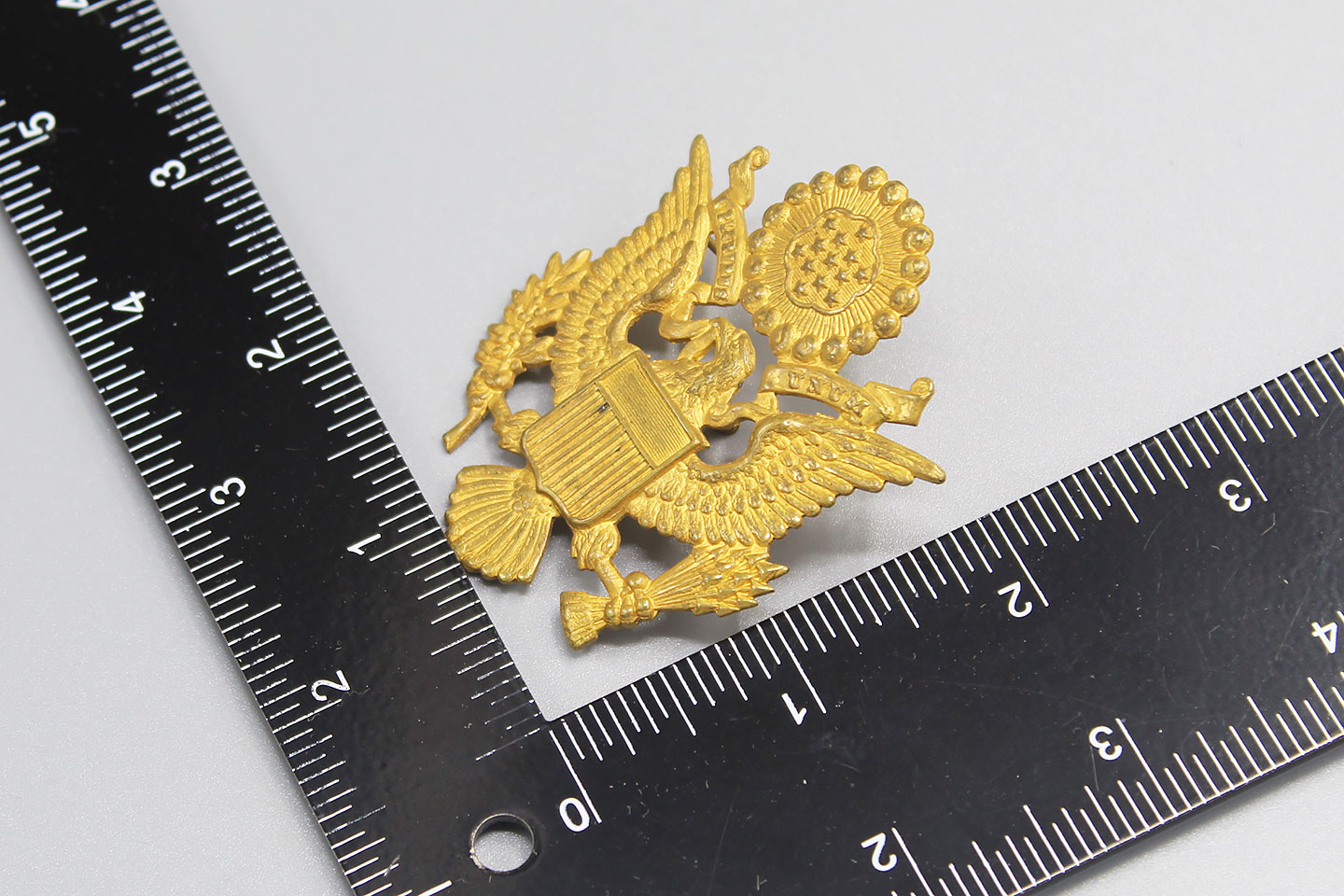 U.S. WW2 Army officer’s visor cap eagle. Brass screw post attachment (no screw nut on this one). Most likely 1940s-1950s (WW2 – Korea) era.
