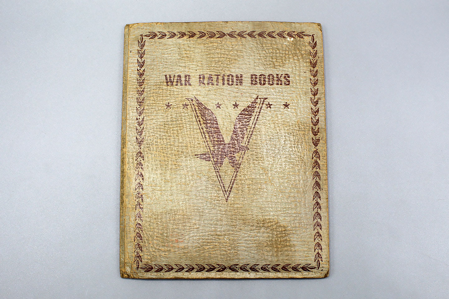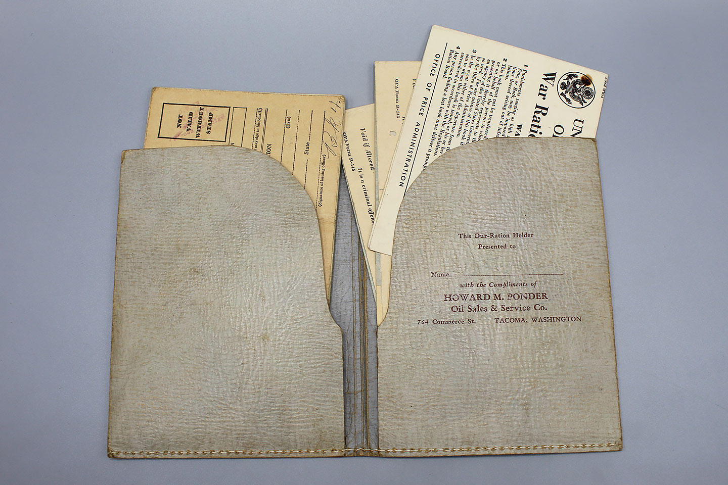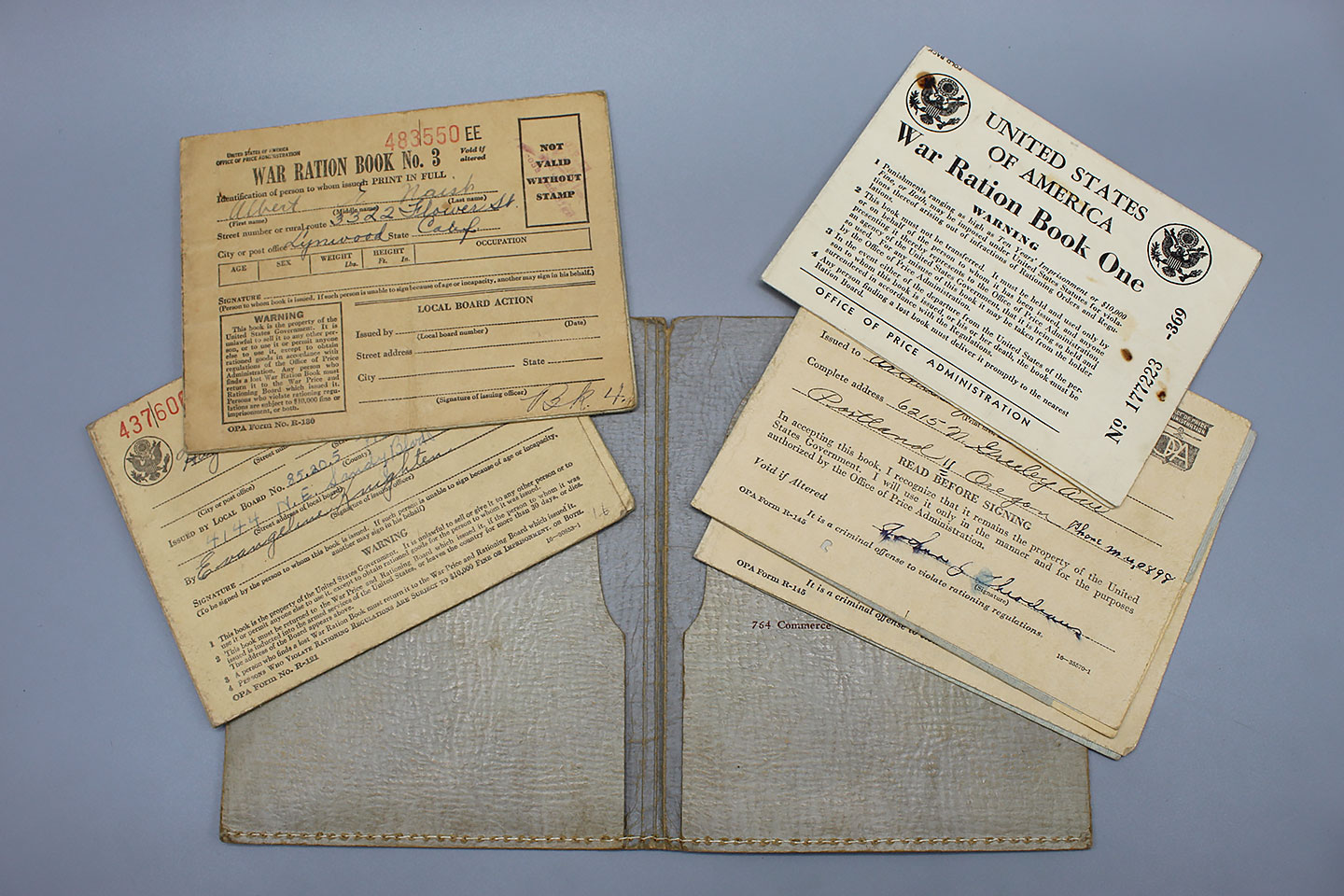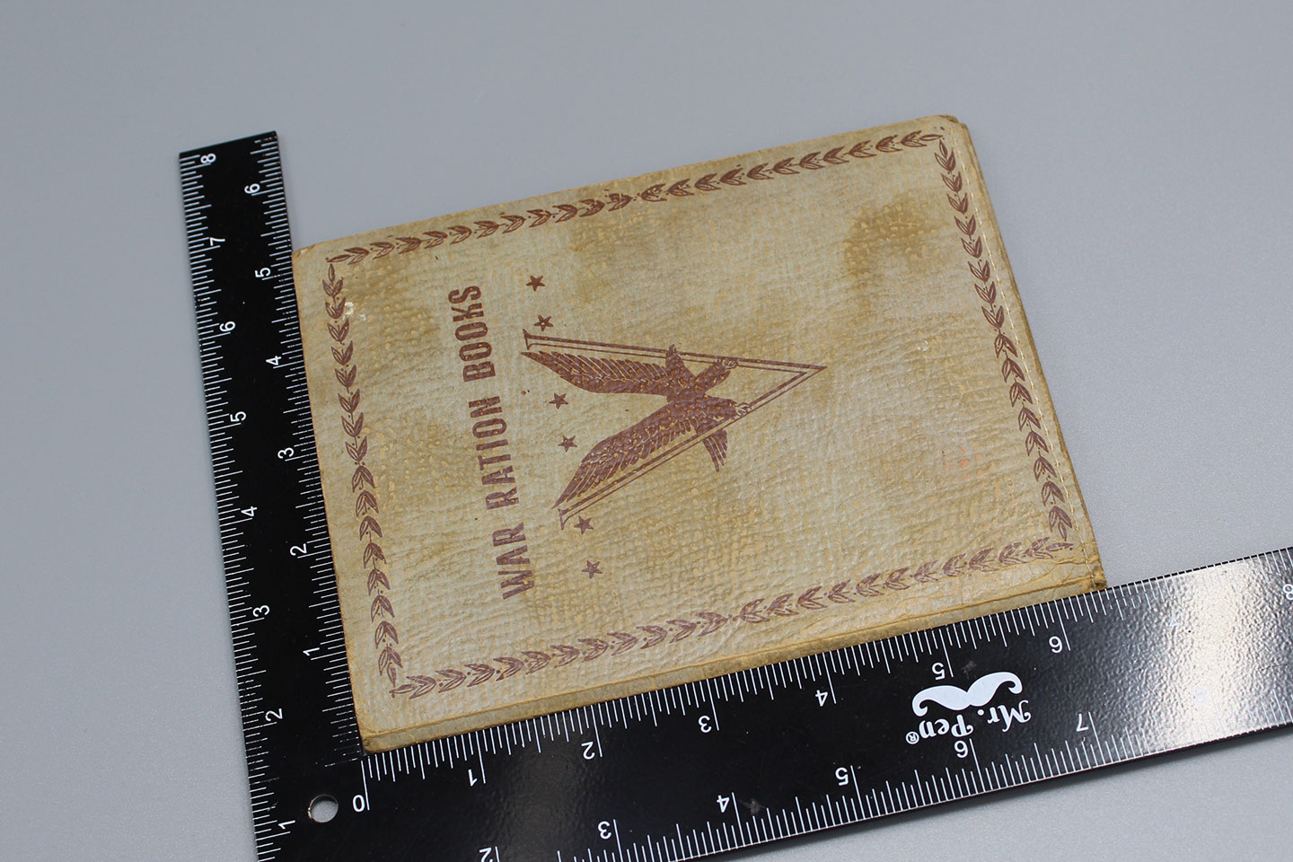 U.S. War Ration Books holder with several ration books. WW2 era. Size approximately 5 inches X 6 1/2 inches. Worn and used condition.