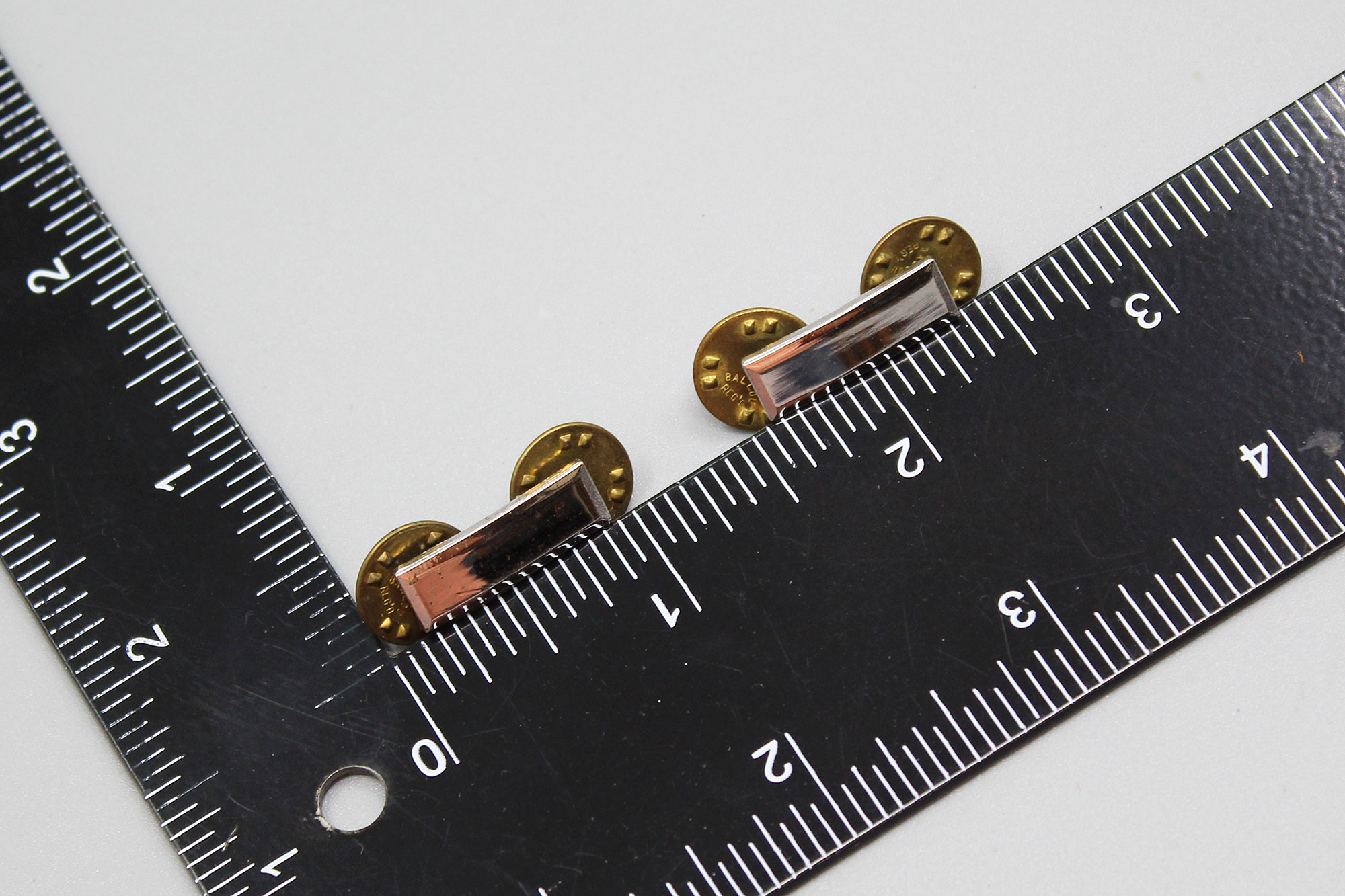 United States (U.S.) Army Lieutenant Insignia Pair. These are small size for most likely a shirt or side cap. Clutch back. Marker marked on back N.S. Meyer Sterling. Most likely 1960s-1970s era.