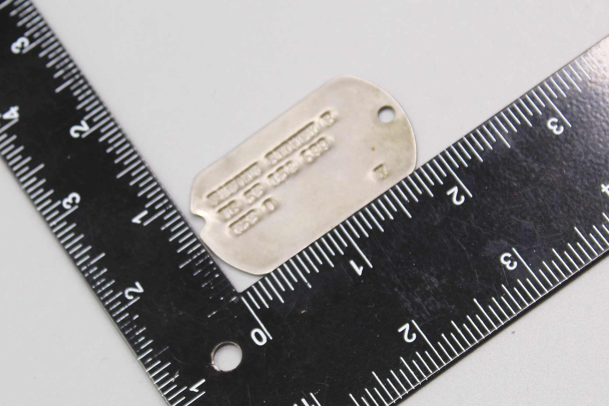 Additional Notes: Notched id tags (dog tags) were standard issue until December of 1964. The Department of Defense (DoD) officially switched to dog tags without notches in early 1965. However, military bases with older notched-style tags in inventory still issued them for a while from 1965 up until 1966.