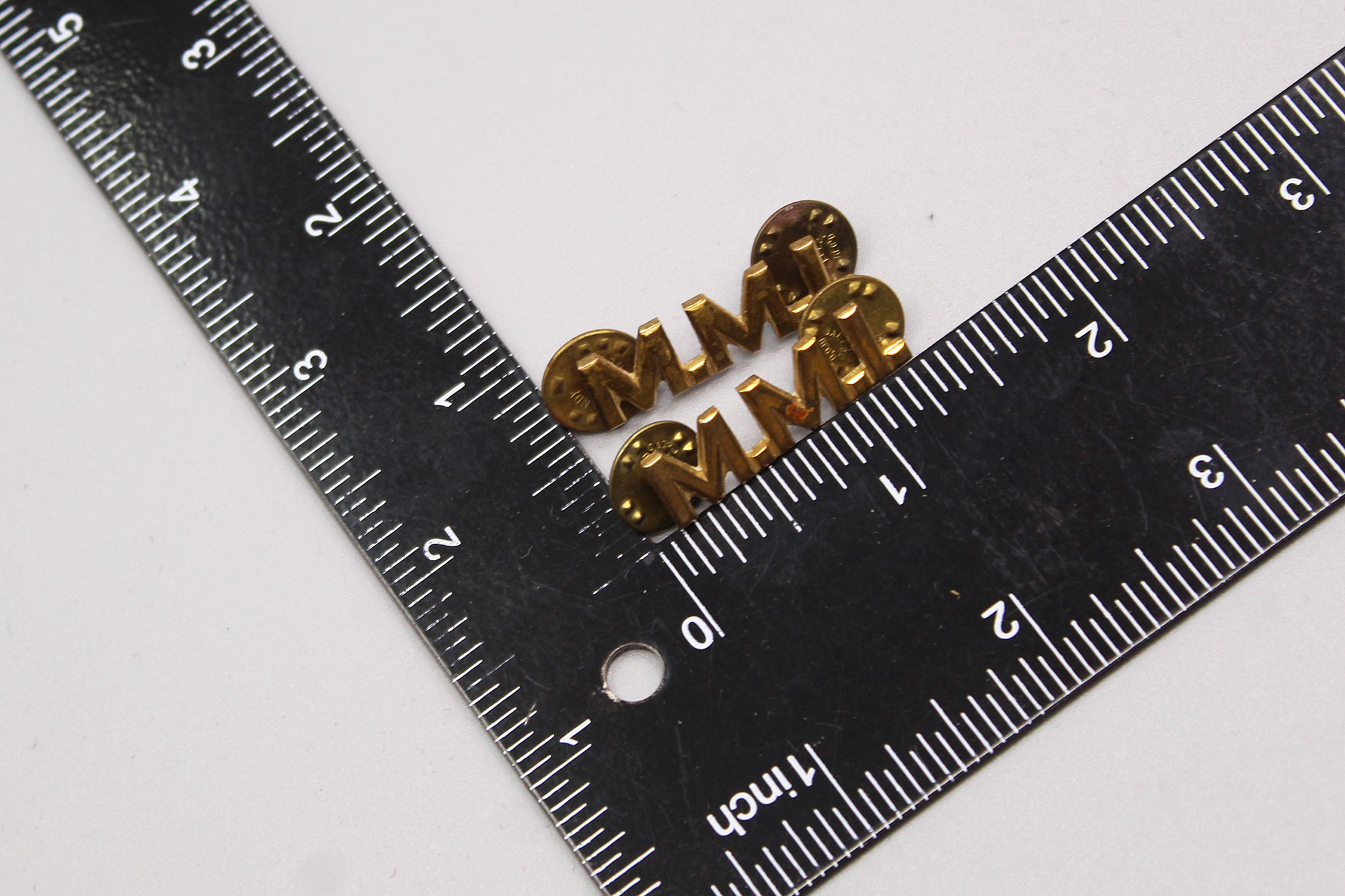 United States MMI (I believe for: Marion Military Institute) Collar Insignia Pair. Most likely for an officer. Clutch back. Worn condition.