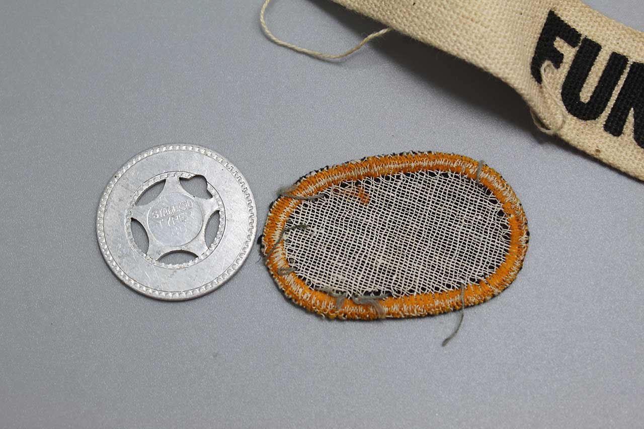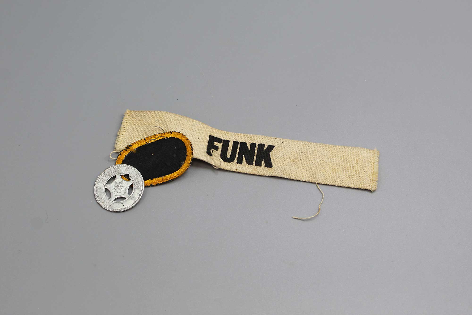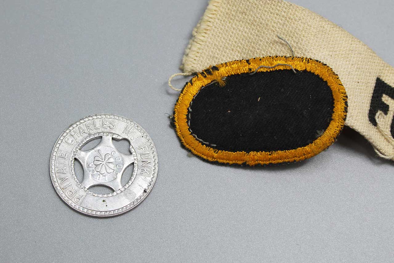 United States Army Airborne Grouping. Has jump oval, name strip, and good luck token named to: Private Charles M Funk. This came in as part of a larger group from Private Funk that I will be listing over the next several days to include some of his 101st Airborne shirts, Camouflaged paratrooper helmet, and other miscellaneous items. Most likely 1950s-1960s era. Worn condition.