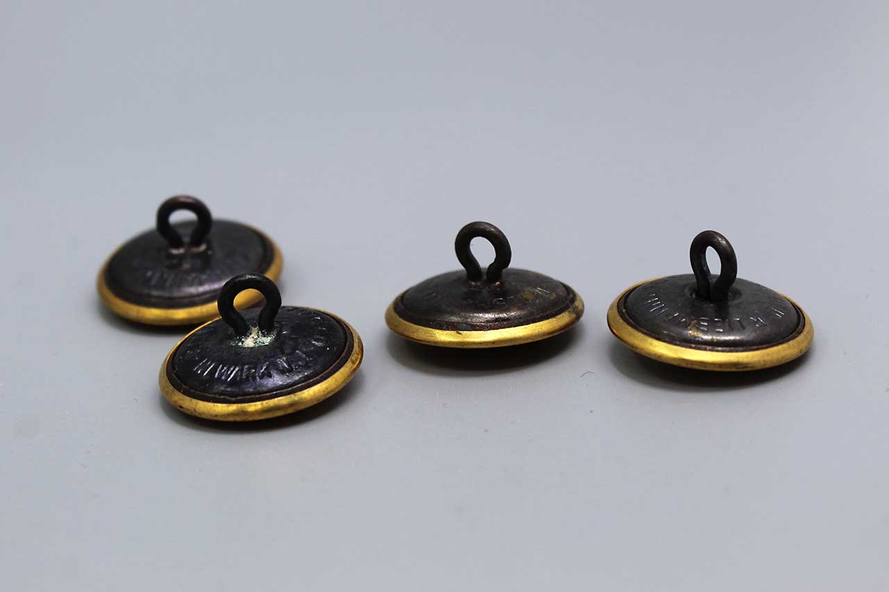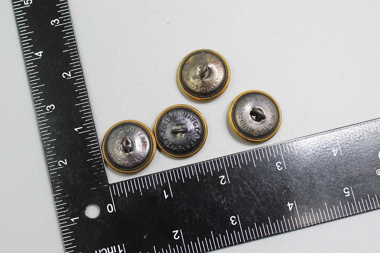 United States Group of Four Army buttons. Marker marked on back. Size approximately 7/8 inch across main front closure buttons, most likely for an US Army Service Uniform. Most likely 1940s-1950s (ww2-Korea) era. Worn condition.