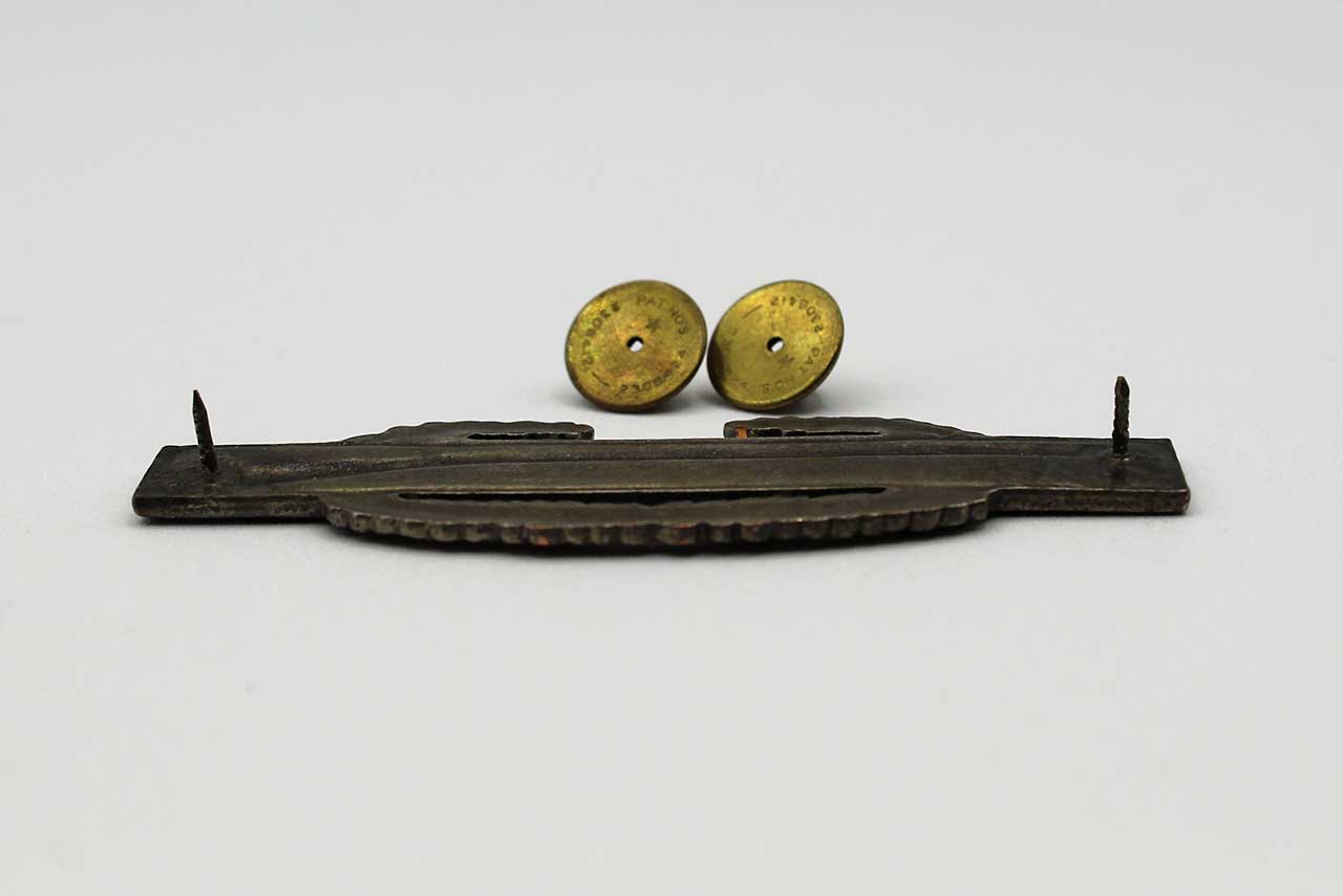 United States Army Combat Infantryman Badge (CIB). Clutch back. Not marker marked, and an unusual die stamped design, maybe Japanese made or British made variation. Date range most likely 1950s to 1960s (Korea-Vietnam) era. Size approximately 3 inches in length. Worn condition.