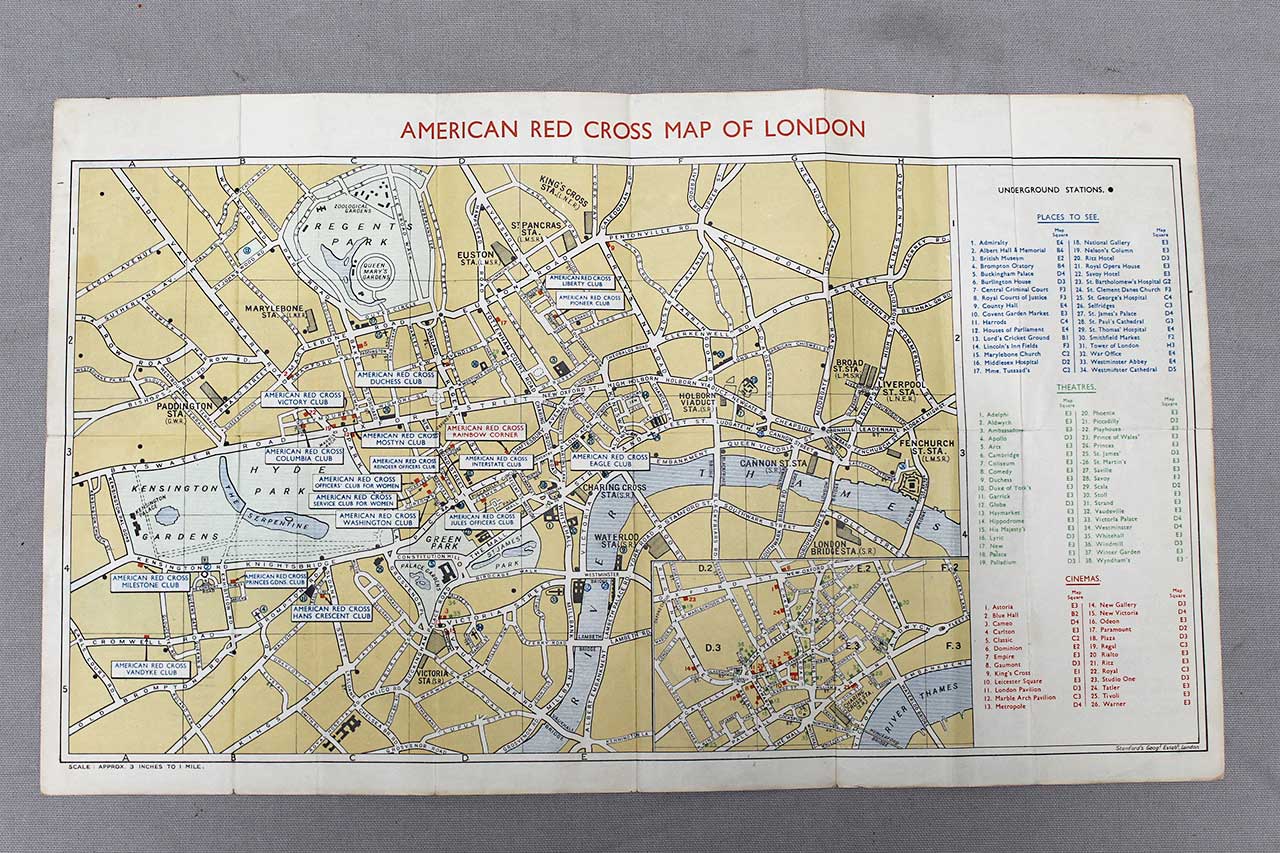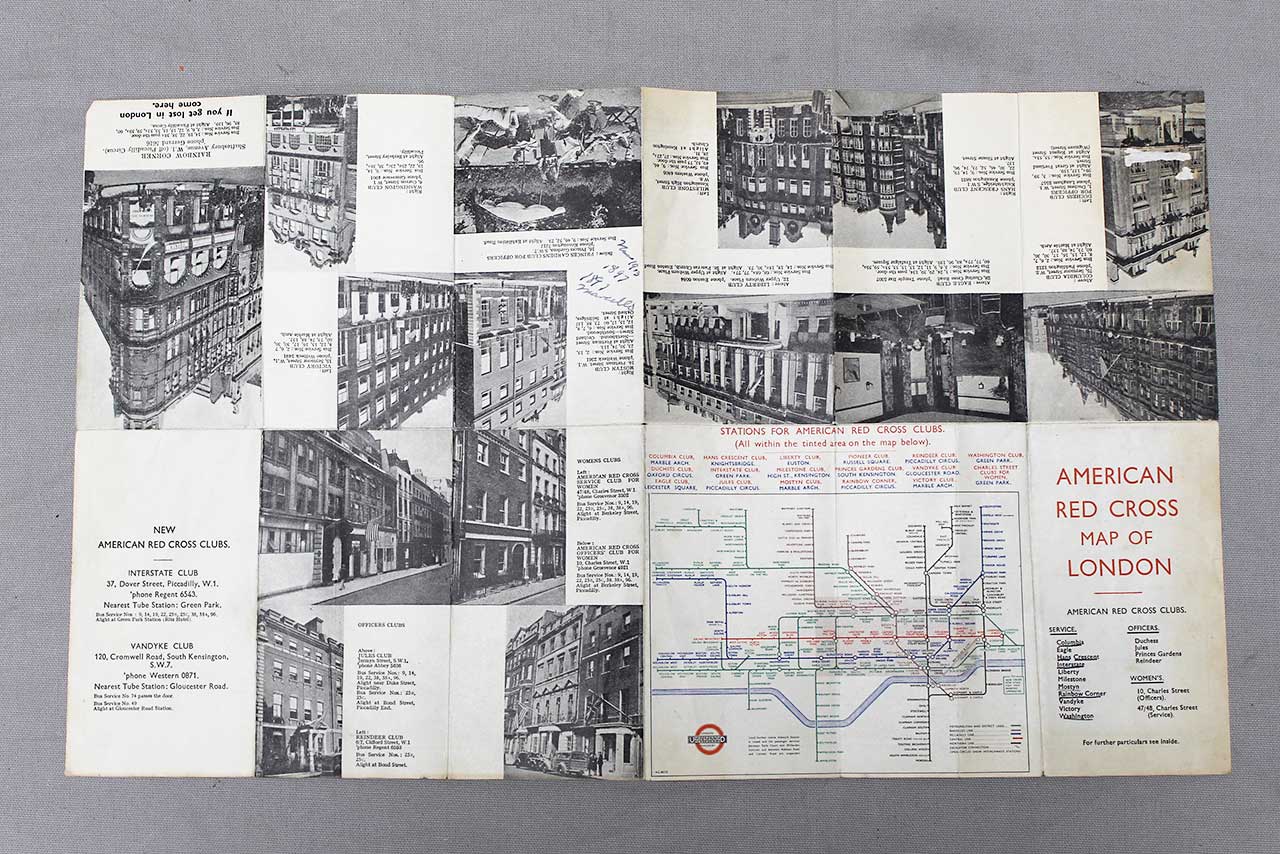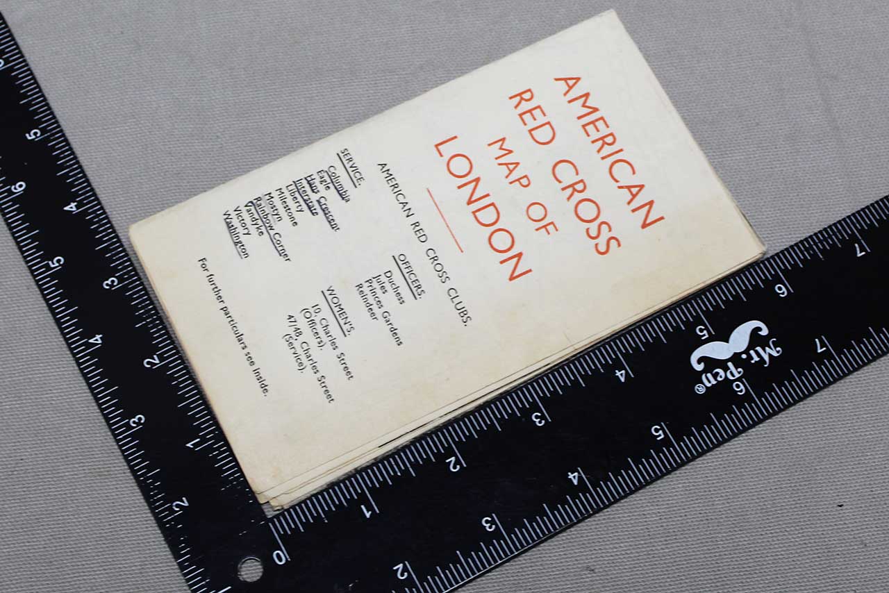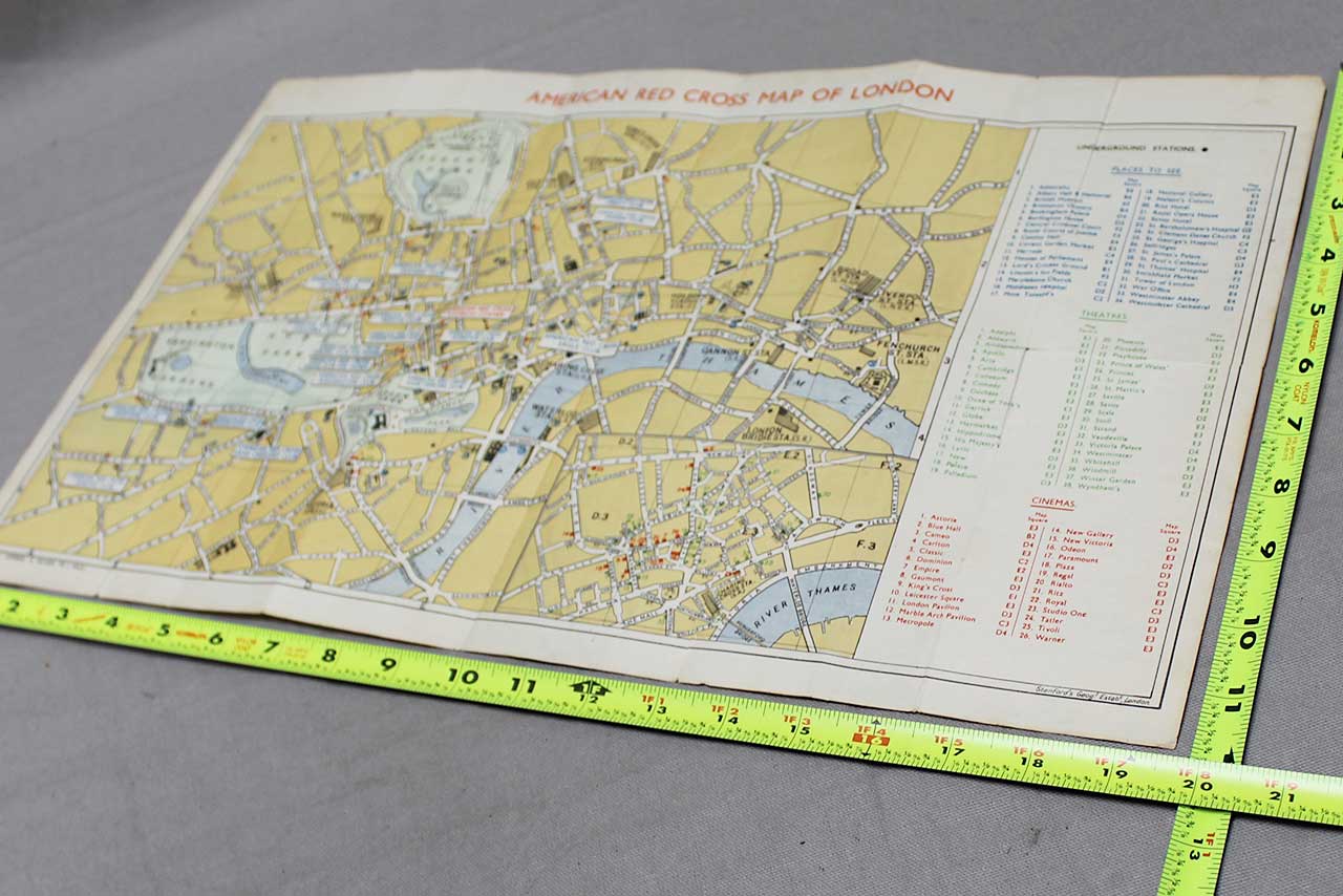 WW2 American Red Cross (ARC) Map of London. Fold out map. Size approximately 19 3/4 inches x 11 3/4 inches. Worn and used condition.
