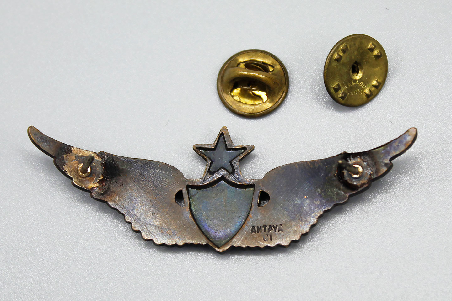 U.S. Senior Army Aviator subdued qualification badge. Clutch back. Marker marked on back ANTAYA. I believe this one is a Vietnam era badge. Size approximately 2 1/2 inches across.