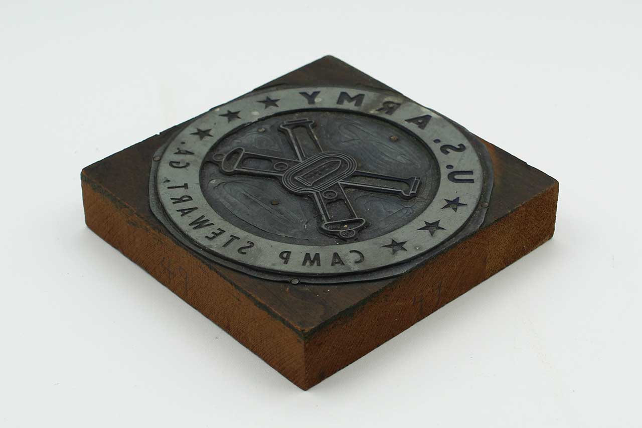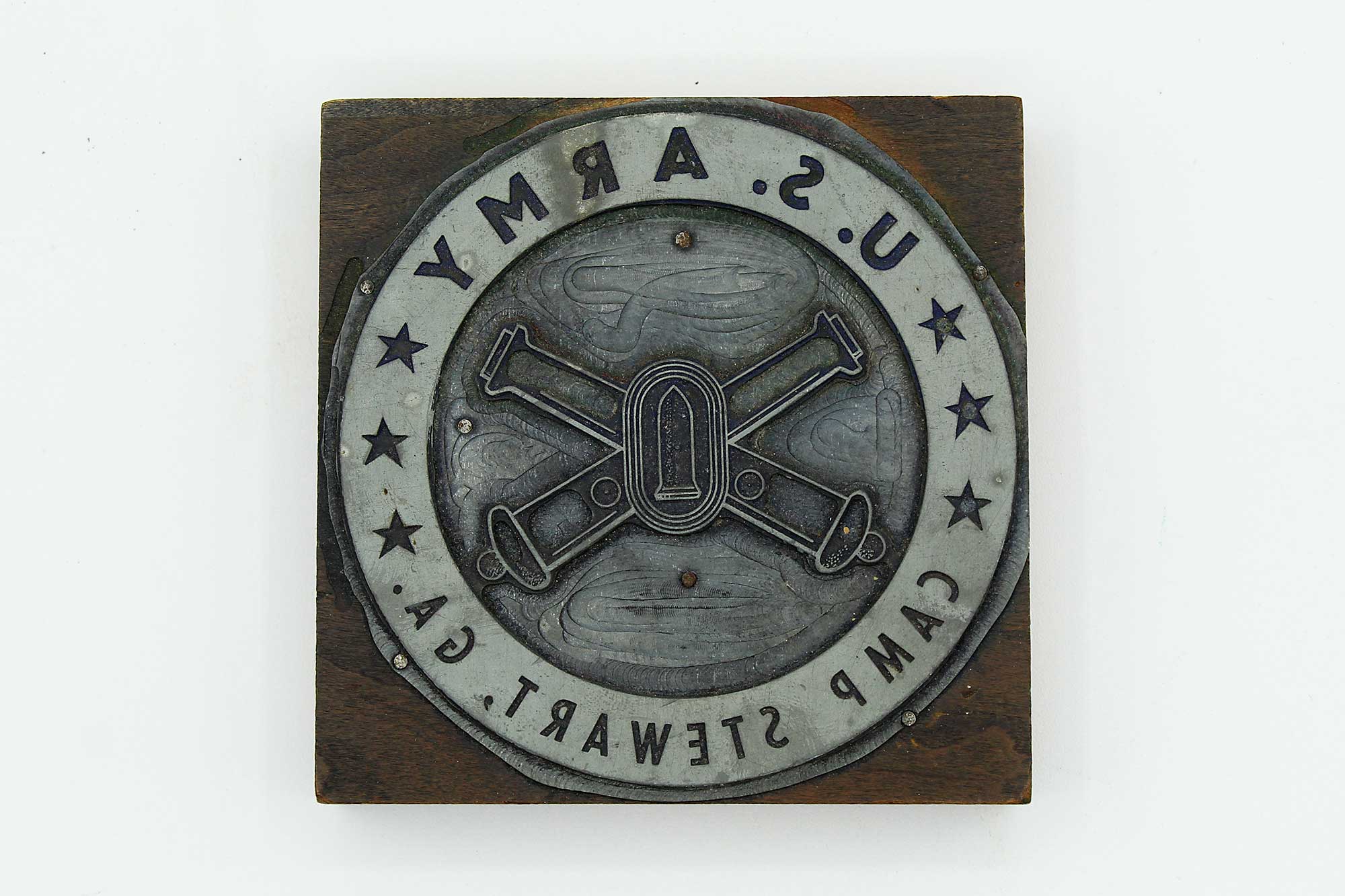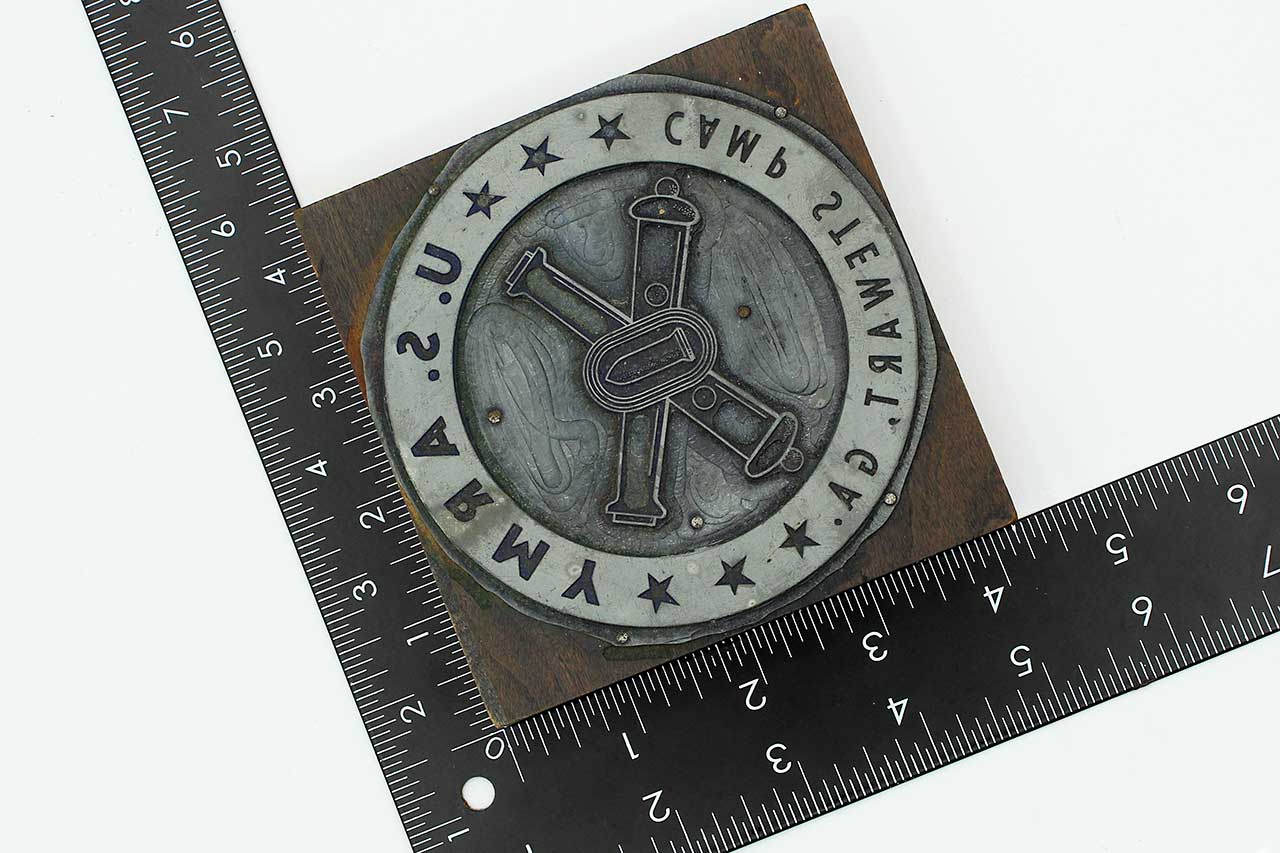 United States Army Coastal Artillery Corps Camp Stewart GA Large Ink Stamp. Most likely 1960s-1990s era. Size approximately 4 1/4 inches across. Worn condition.
