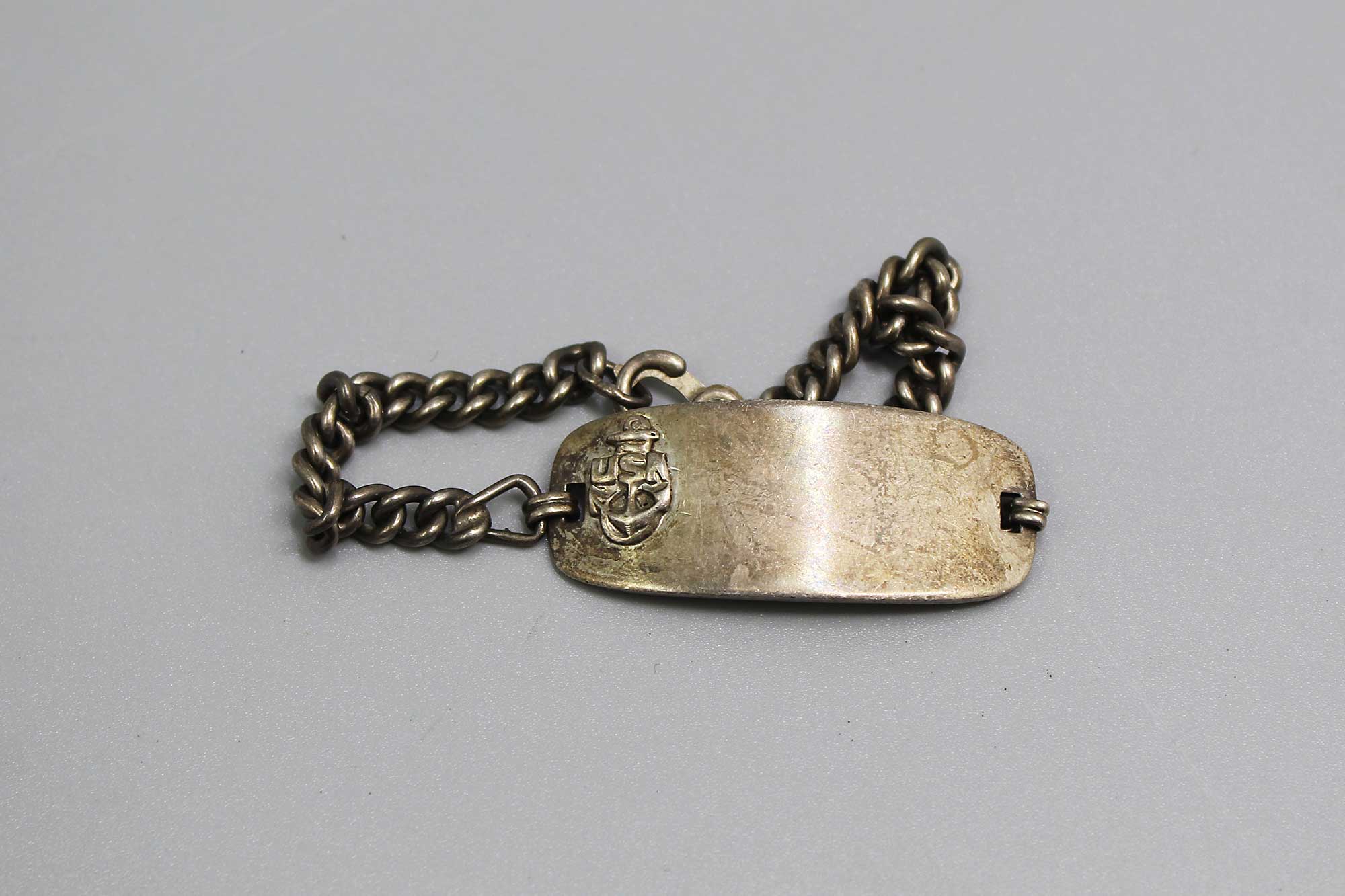 United States Navy bracelet Sterling marked on back. Sweetheart type bracelet. Approximately 7 inches in length. Most likely 1940s (ww2) era. Worn condition.
