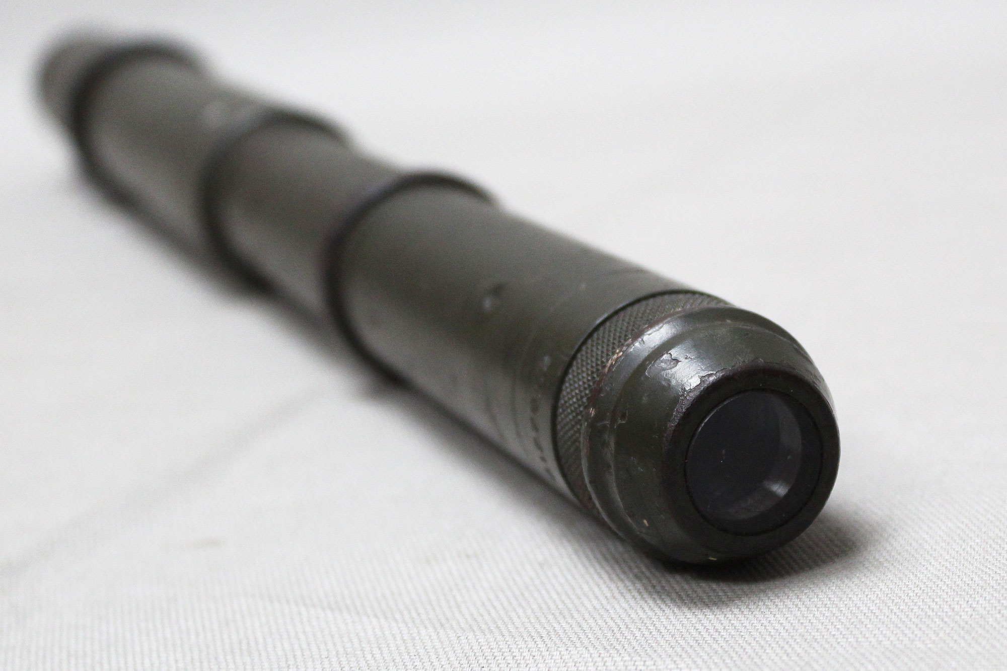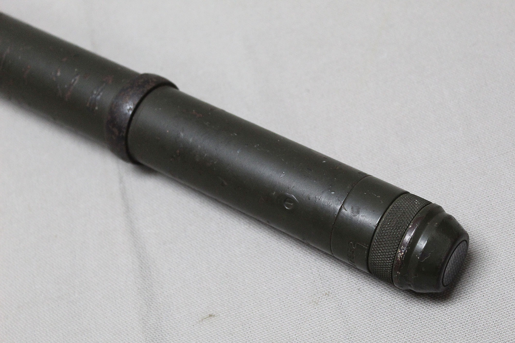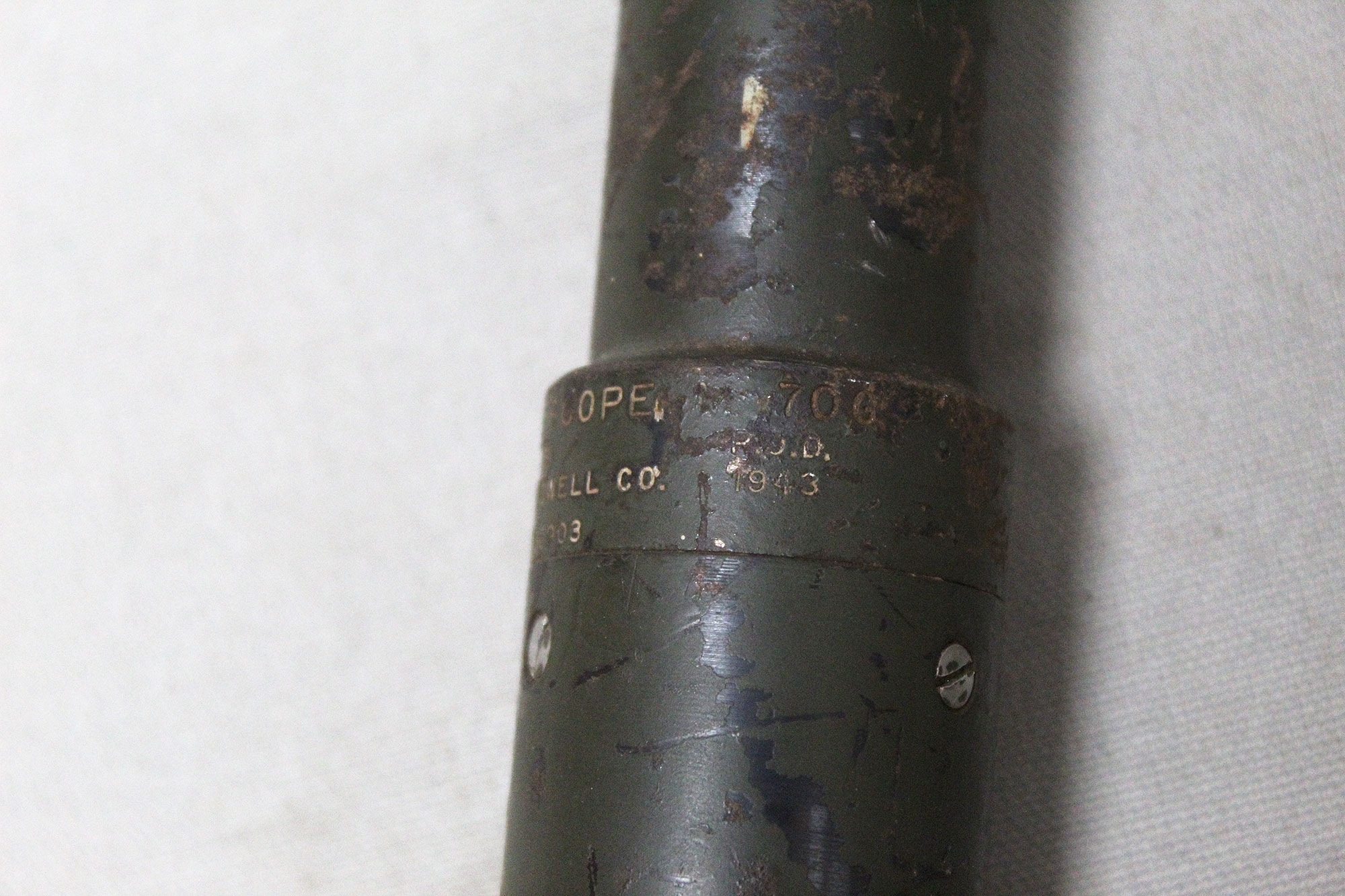 United States Army 1943 Telescope M70G. The M70G telescope sight was used on M10 GMC tank destroyers. Marker marked Bell & Howell Co and dated 1943. Optic okay, however, there are a lot of black specs in the optics. Length approximately 22 1/2 inches.