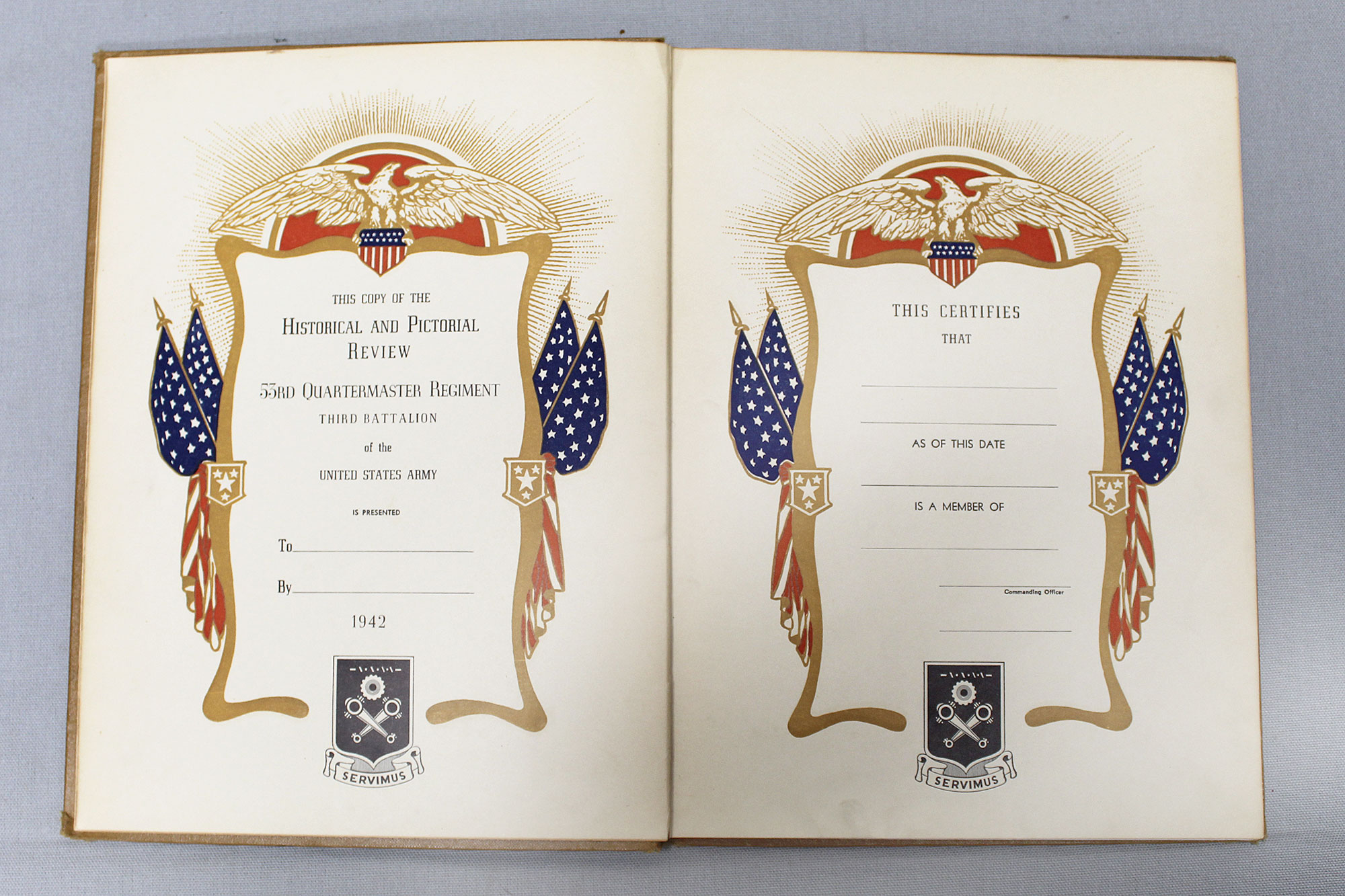 United States Third Battalion 53rd Quartermaster Regiment Book Fort Bragg, North Carolina 1942. Keep Em Rolling USA. Worn and used condition.